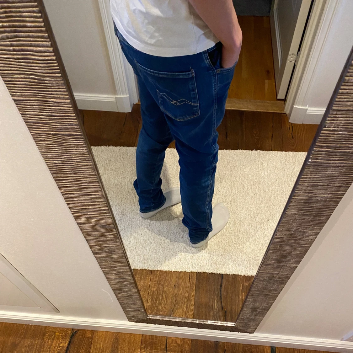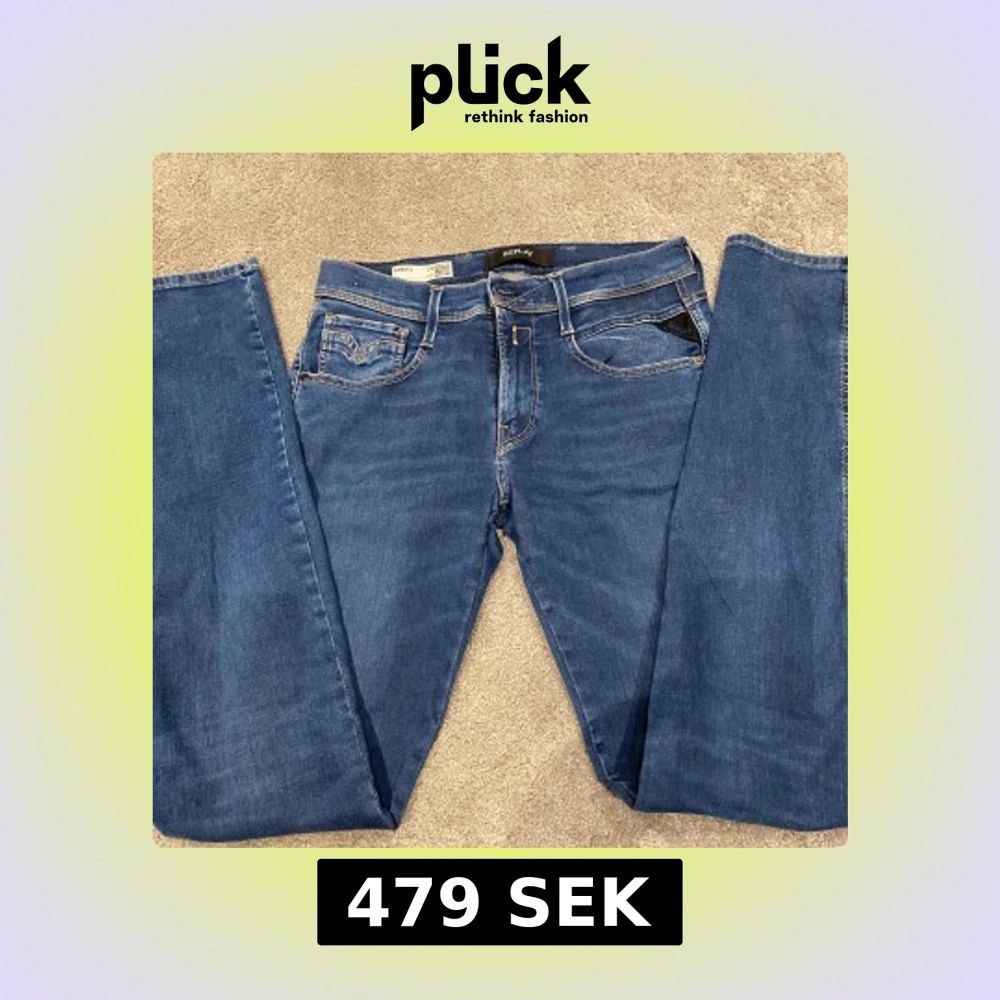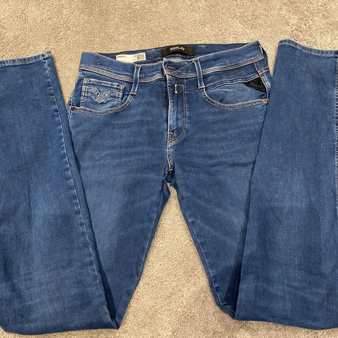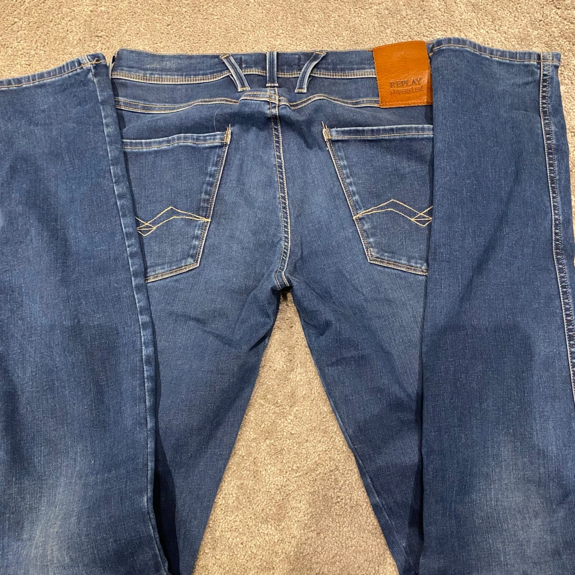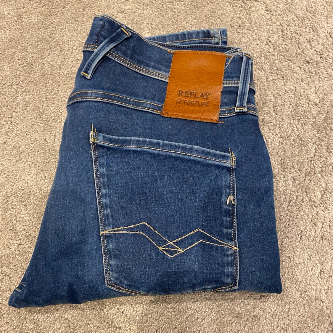 Säljer ett par blå Replay Hyperflex jeans med klassisk femficksdesign och snygga kontrastsömmar. Jeansen har slim passform och är tillverkade i stretchigt jeansmaterial för extra komfort. Märkespatch i läder baktill och diskret logga på fickan framtill.