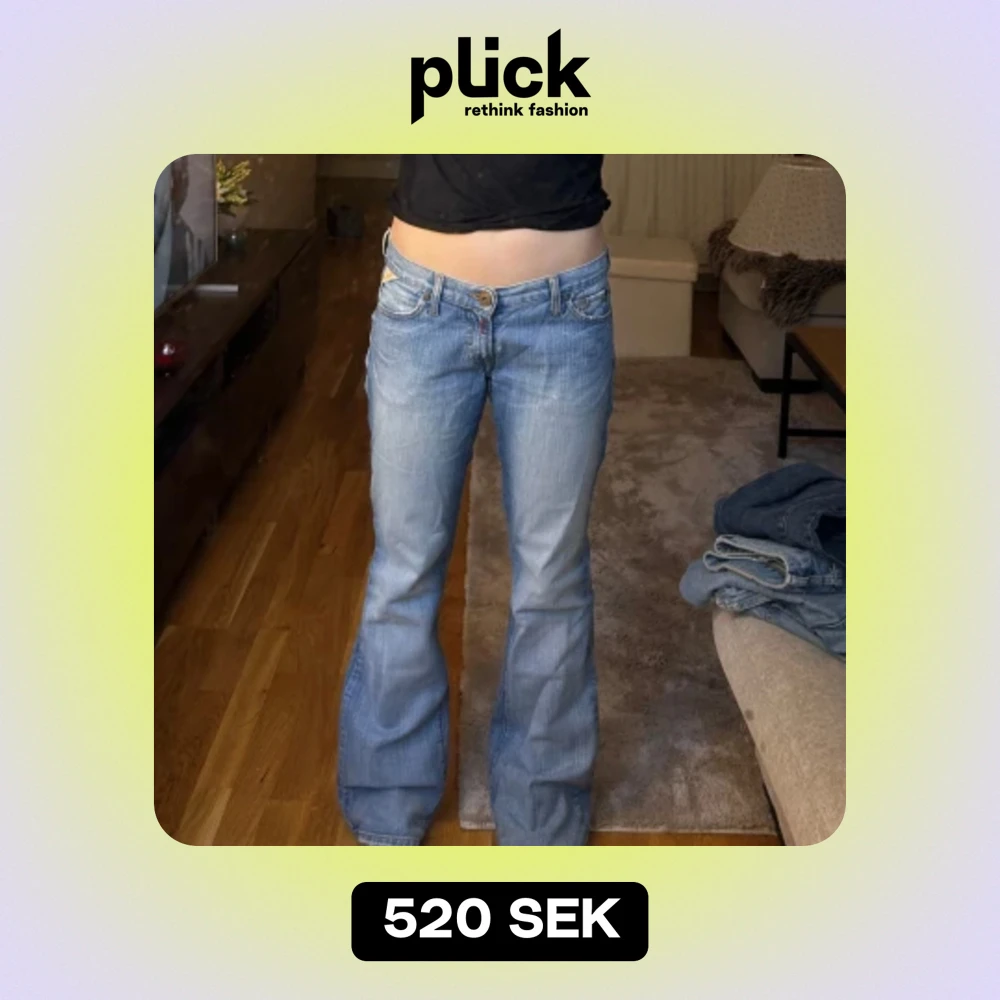 Säljer ett par såå snygga blå bootcut, lågmidjade jeans från Replay. Jättefina verkligen men tyvärr för långa för mig ( har klackar på bilden). Storlek W28 L32🫶🏻 Midjemått: 40 cm (tvärs över) Innerbenslängd: 84 cm 💕