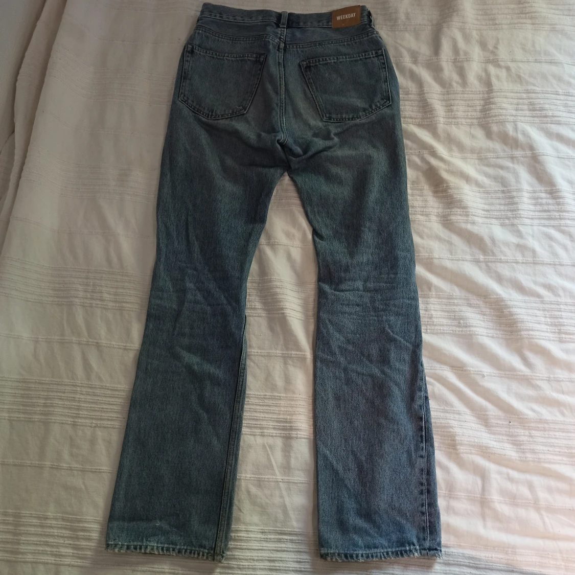 Ett par blåa Weekday Jeans i storlek 28/32. Använda men i gott skick. Rak passform, modell "Lane". Nypris 500.