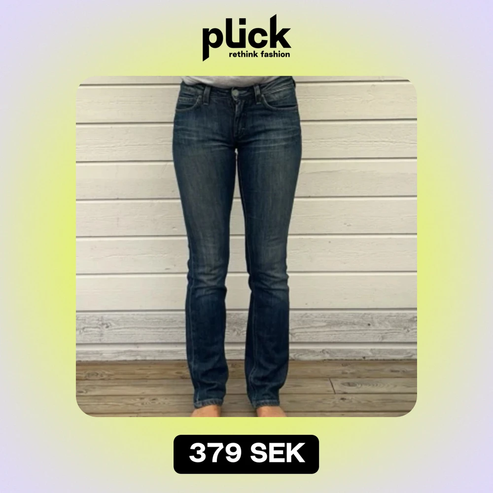 Mörkblå ”tvättade” lågmidjade jeans från Acne. Fint skick. Jag är 169.