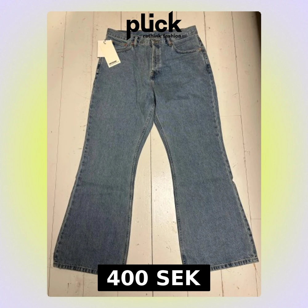 As kattiga jeans från Dr Denim i ljusblå wash. Byxorna har raka, breda ben och är utsvängda/bootcut längst ner för en chill och trendig look. Tillverkade av återvunnen bomull, perfekt för dig som gillar retrovibbar och hållbart mode. Jeansen är endast testade har aldrig använt de annars. Köpte de för ett tag sen men de har bara legat i garderoben. Sjukt snygga asfräscha på sommaren med en vit tisha.