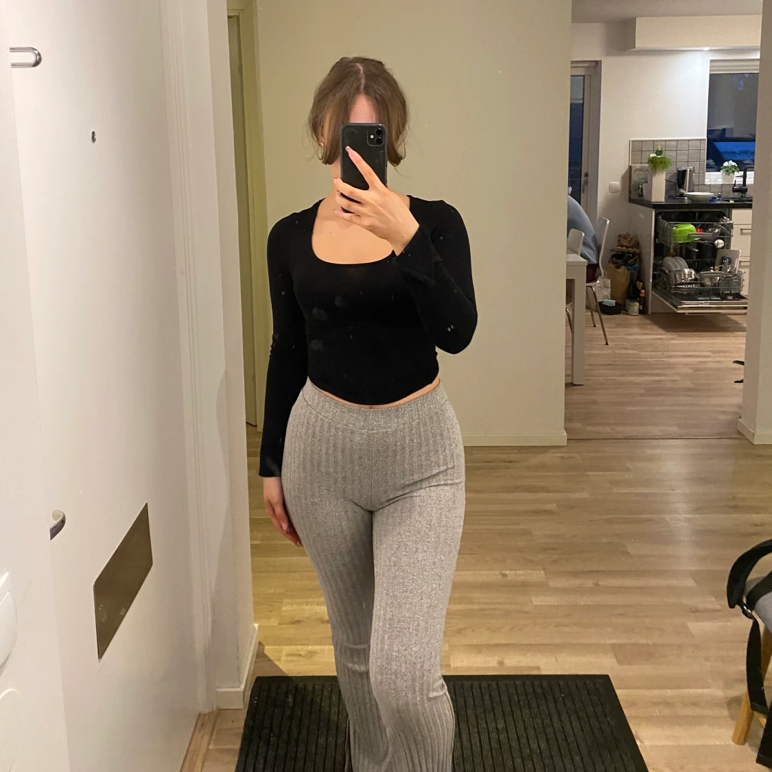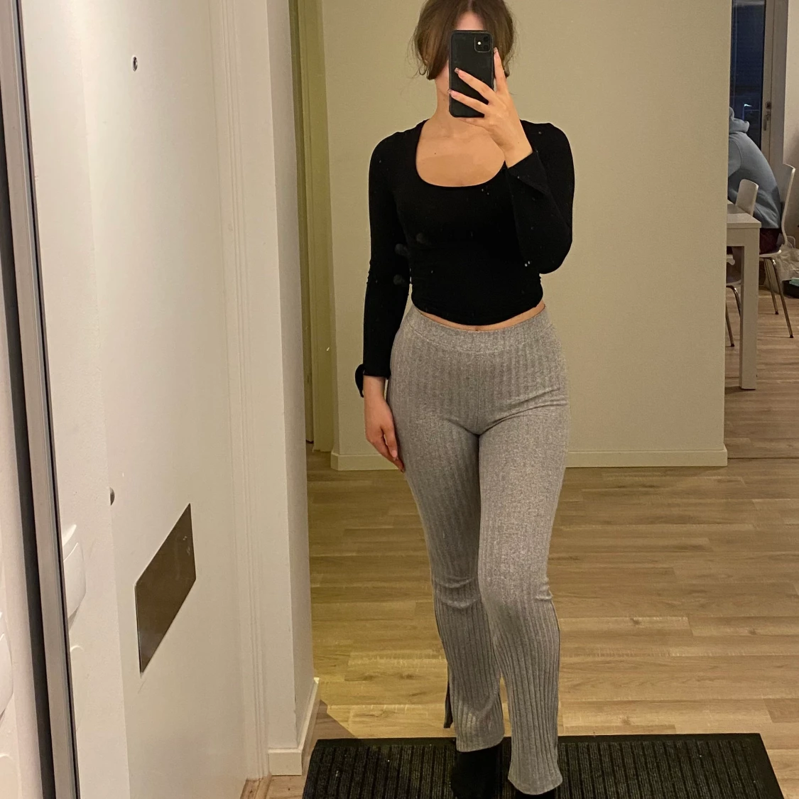 Gråa sköna ribbade tights från Gina tricot i storlek XS.