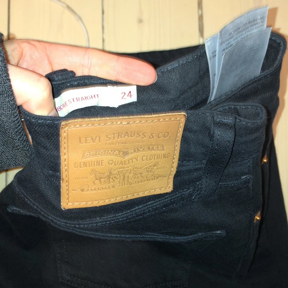 Ankelkorta svarta Levis i populära modellen ribcage. Storlek 24, men passar mig som har 25. Använda men i bra skick. kan mötas i Malmö eller gbg annars tillkommer frakt.