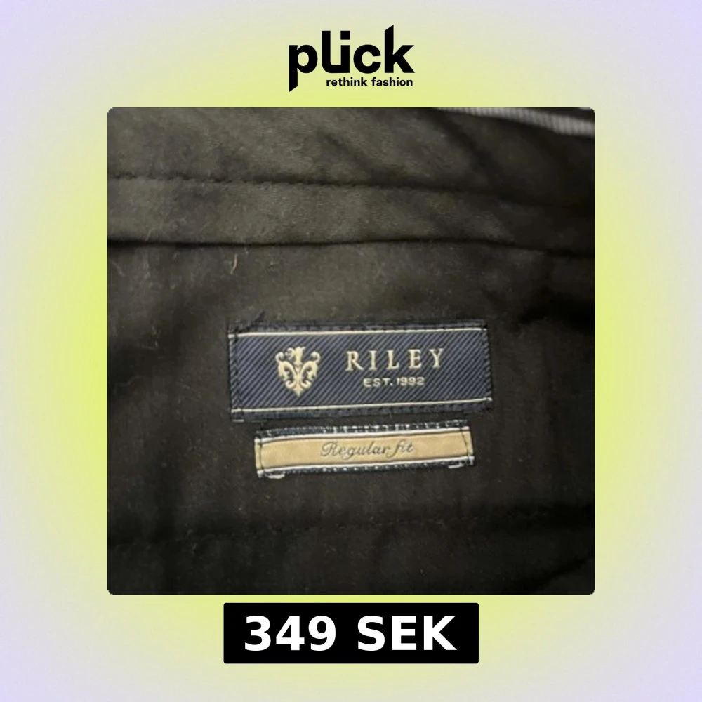 Säljer ett par svarta kostymbyxor från Riley i regular fit. Byxorna har klassisk rak passform och är tillverkade i ett mjukt material som känns bekvämt. Perfekta för dig som gillar stilrena och tidlösa plagg. Stängs med dragkedja och knapp.