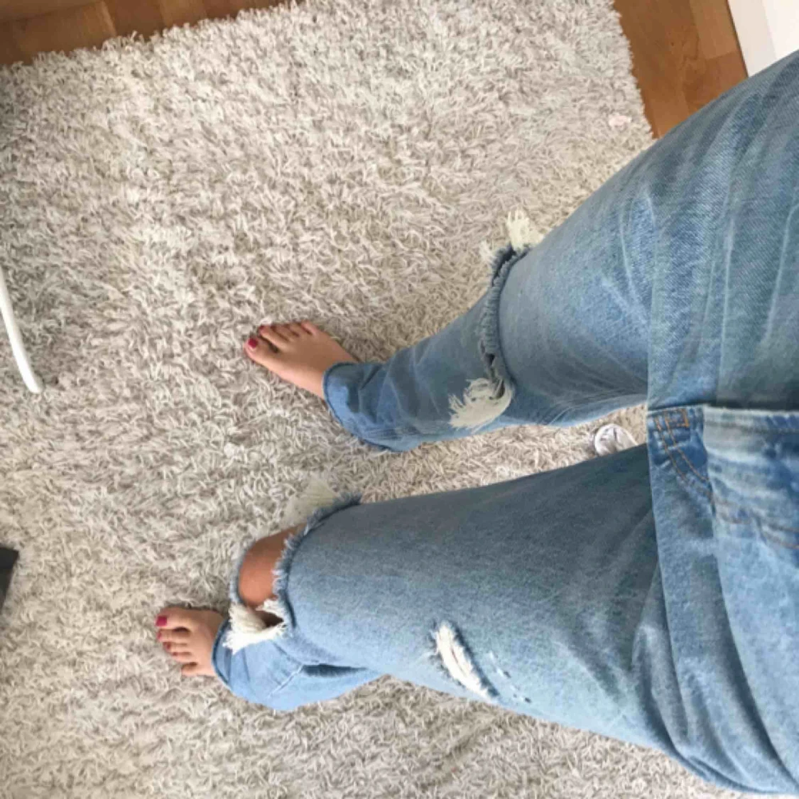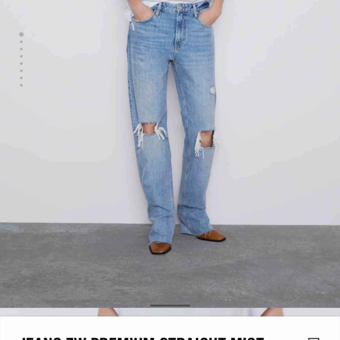 Supertrendiga och efterfrågade jeans från Zara! Dom är lite ljusare i verkligheten än på första bilden. Relativt nya men använda ett par gånger men dom har inga slitningar eller fläckar, alltså bra skick. Säljer pga fel storlek. Slutsålda på hemsidan😊