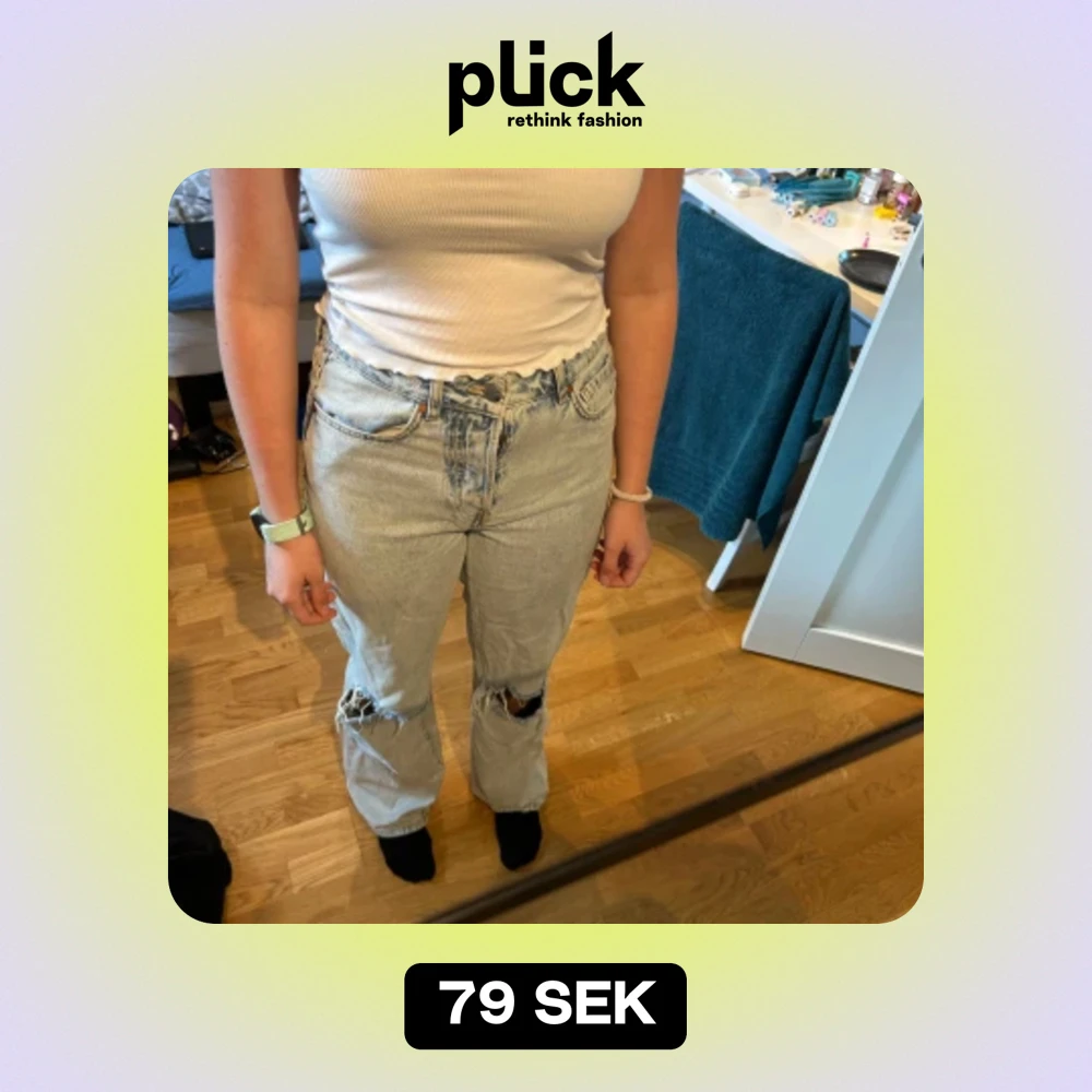 Ripped ljusblĂ„ regular jeans frĂ„n bok bok med midjan 28 och lĂ€ngd 32. SĂ€ljer dĂ„ de inte anvĂ€nds lĂ€ngreâ€ïž