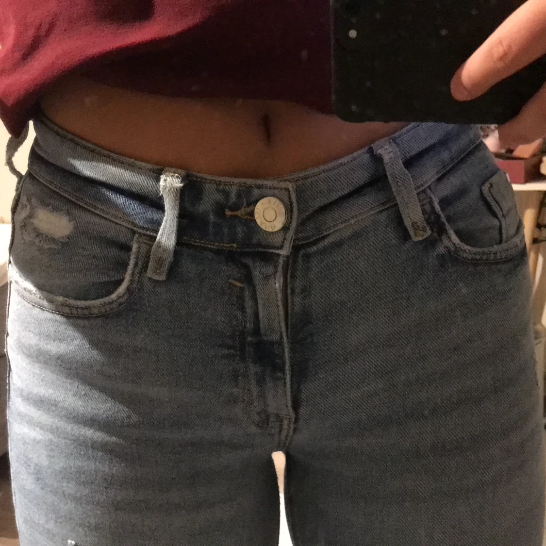 Lågmidjade slitna jeans från River Island i storlek S. Väldigt sköna för att vara lågmidjade och dom formar rumpan bra❣️ Köpte för ca 300kr men säljer för 65kr, (köparen står för frakt)!!❣️