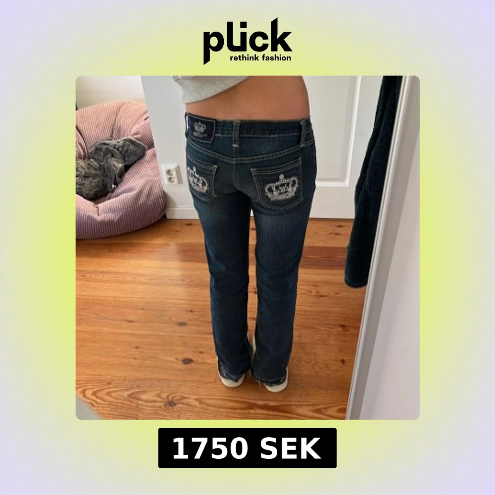 Snygga blå jeans från Rock & Republic i samarbete med Victoria Beckham. Modellen har raka ben, låg midja och coola broderade bakfickor med krona och blingdetaljer. Klassisk femficksdesign och silverfärgad knapp framtill. Perfekta för dig som gillar statement-jeans! De är storlek 29, innerbenslängd på 77cm och 37cm rakt över midjan💓Priset är inte hugget i sten!
