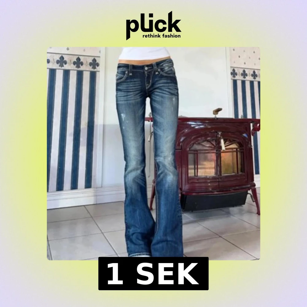 Snygga blå bootcut jeans från Rock Revival med ljusa slitningar och broderade bakfickor. Låg midja .