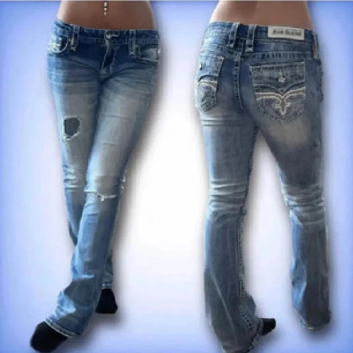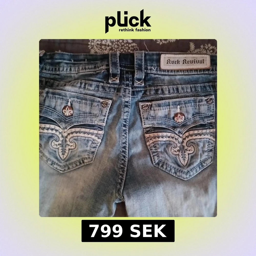 Säljer ett par sjukt snygga rock revival jeans, köpta på vinted för 1000kr men har aldrig använt då de inte passade mig samt var för långa🥲. De är i bra skick men har lite slitningar, personligen tycker jag det gör dem snyggare❤️ Midjemåttet rakt över:40cm. Innrebenslängden är ca:82cm. Pris kan diskuteras🫶 Var inte blyg att kontakta mig vid frågor💕
