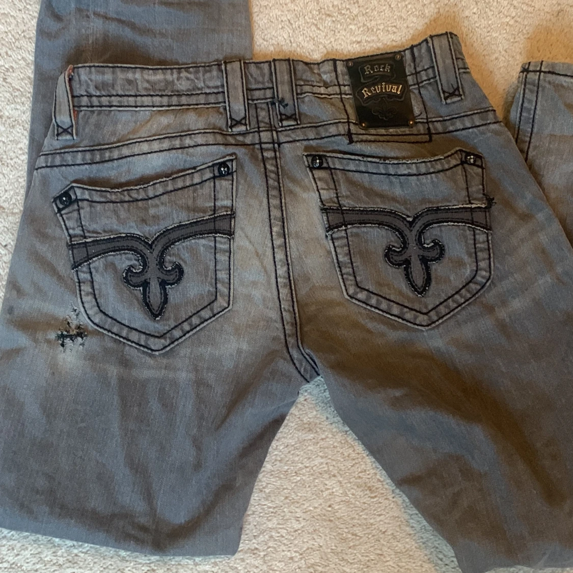 Jätte snygga rockrevival jeans som jag inte använder längre. Ganska slitna lägnst ner men inget man tänker på! Midja:44 innerben:83