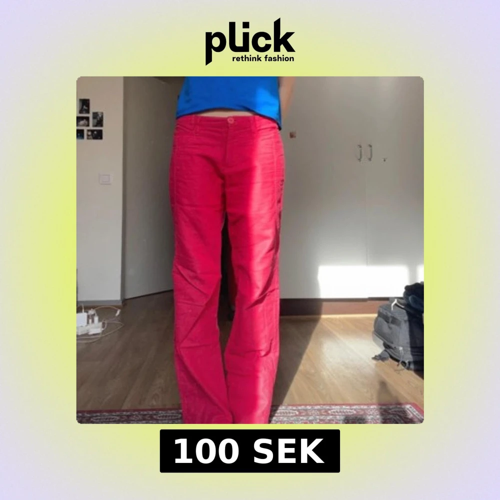Snygga röda byxor med knappar framtill. De har en rak passform och är perfekta för att lägga till en färgklick i garderoben. Passar bra till både vardag och mer uppklädda tillfällen.