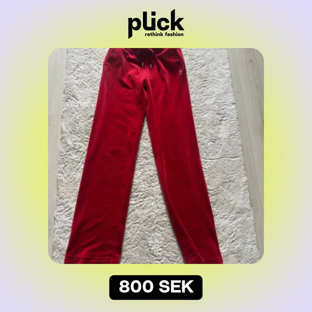 säljer mina superfina röda juicy byxor med diamanter på baksidan❤️ dom är endast använda typ 3 gånger och är i superskick!💕 pris kan diskuteras! nypris: 1200kr🫶