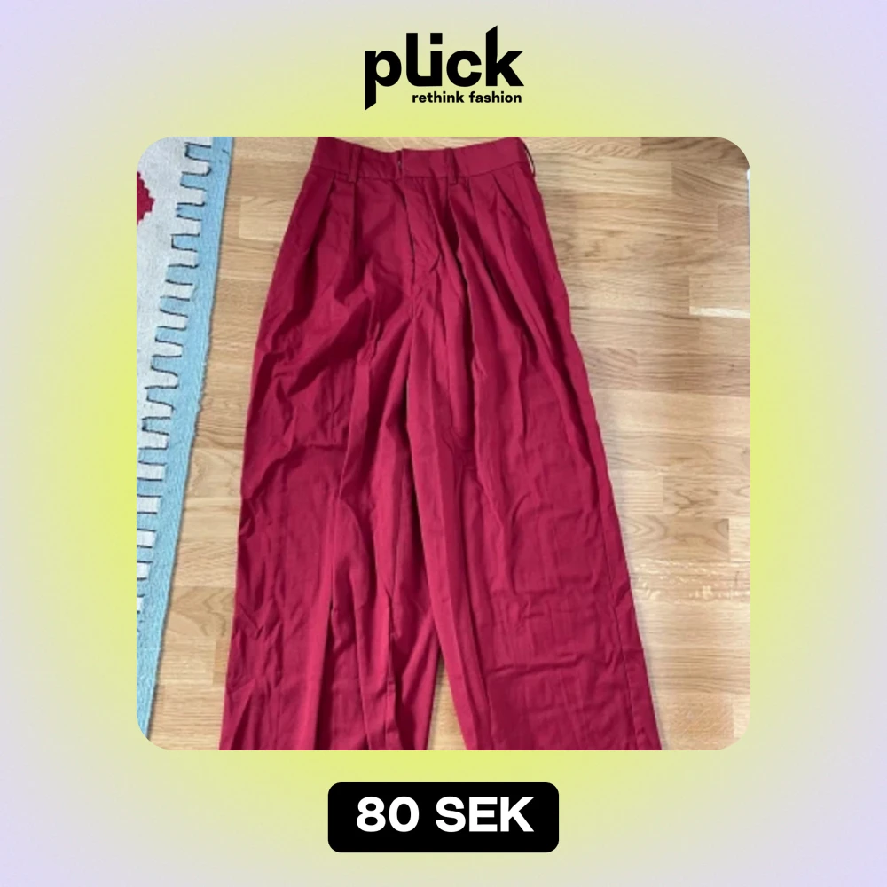 Wide leg och mid waist kostymbyxor i röd färg. Strl 34 men passar även 36. Har dragkedja. Flared.