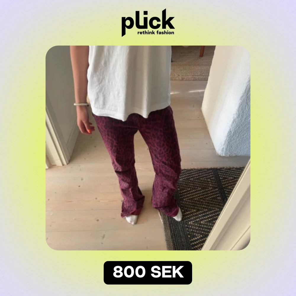 Sååå coola och trendiga leopard jeans köpta second hand. Dem är lite långa på mig som är 163 så skulle säga att dem passar i längden från 163cm till typ 172 lite beroende på.