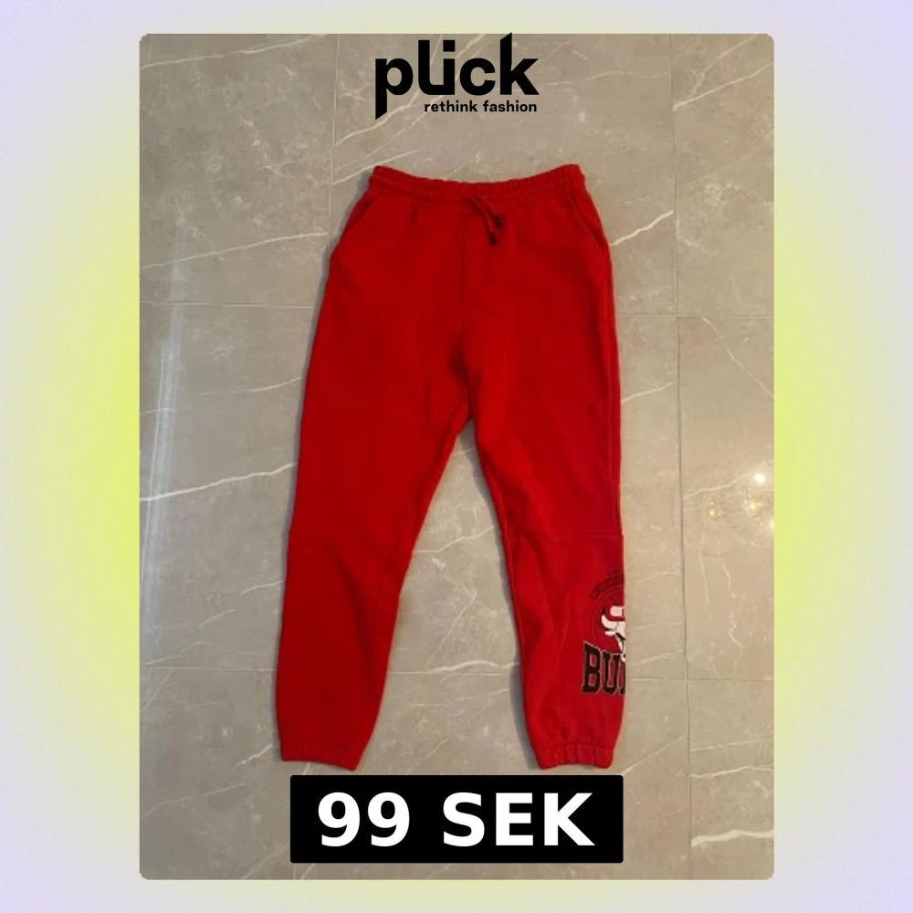 Röda mjukisbyxor från NBA med Chicago Bulls-tryck på ena benet. Byxorna har resår och snörning i midjan samt muddar vid bensluten. Perfekta för chill eller sportig stil. Tillverkade i mjukt material för maximal komfort.