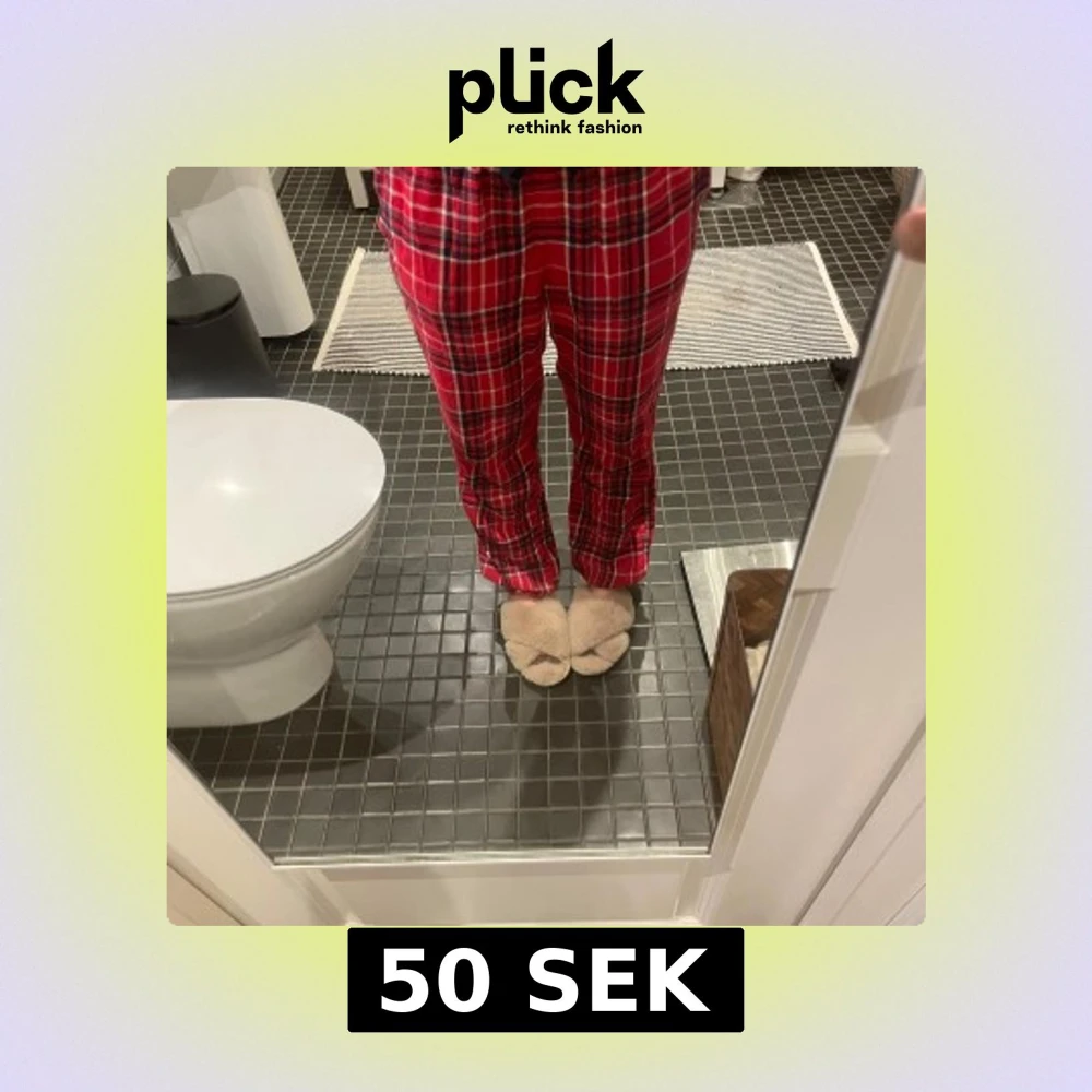 Säljer ett par mysiga röda rutiga byxor från KappAhl. Byxorna har en söt rosett i midjan och är perfekta för en avslappnad dag hemma. Fint skick