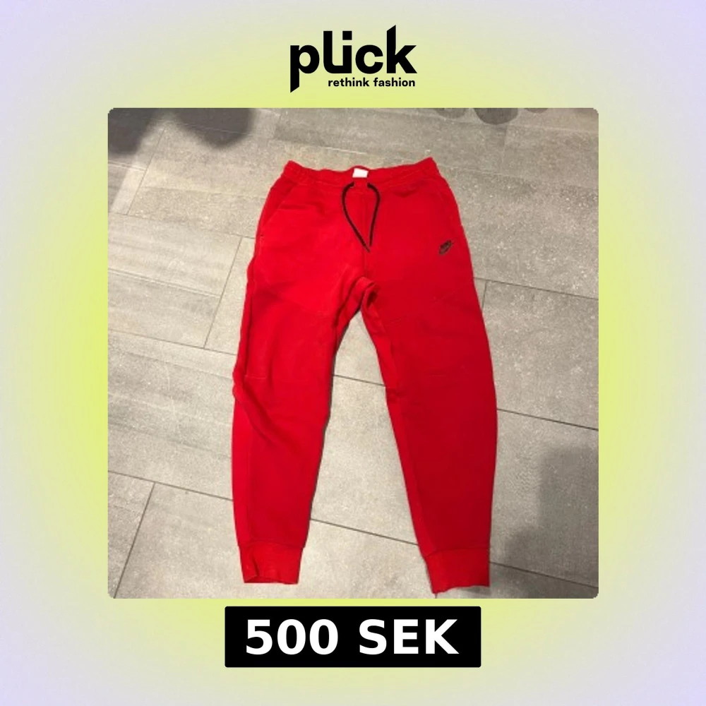 Säljer ett par röda tech fleece byxor, den äldre modellen med både dragkedja-ficka samt två vanliga fickor. Pris kan diskuteras vid snabbt köp