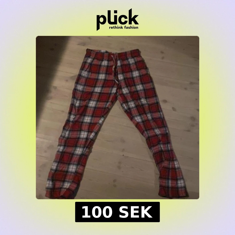 Mysiga mjukisbyxor i röd, vit och svart rutig design. Byxorna har resår i midjan och snörning för extra komfort. Perfekta för chill dagar hemma eller som pyjamasbyxor.