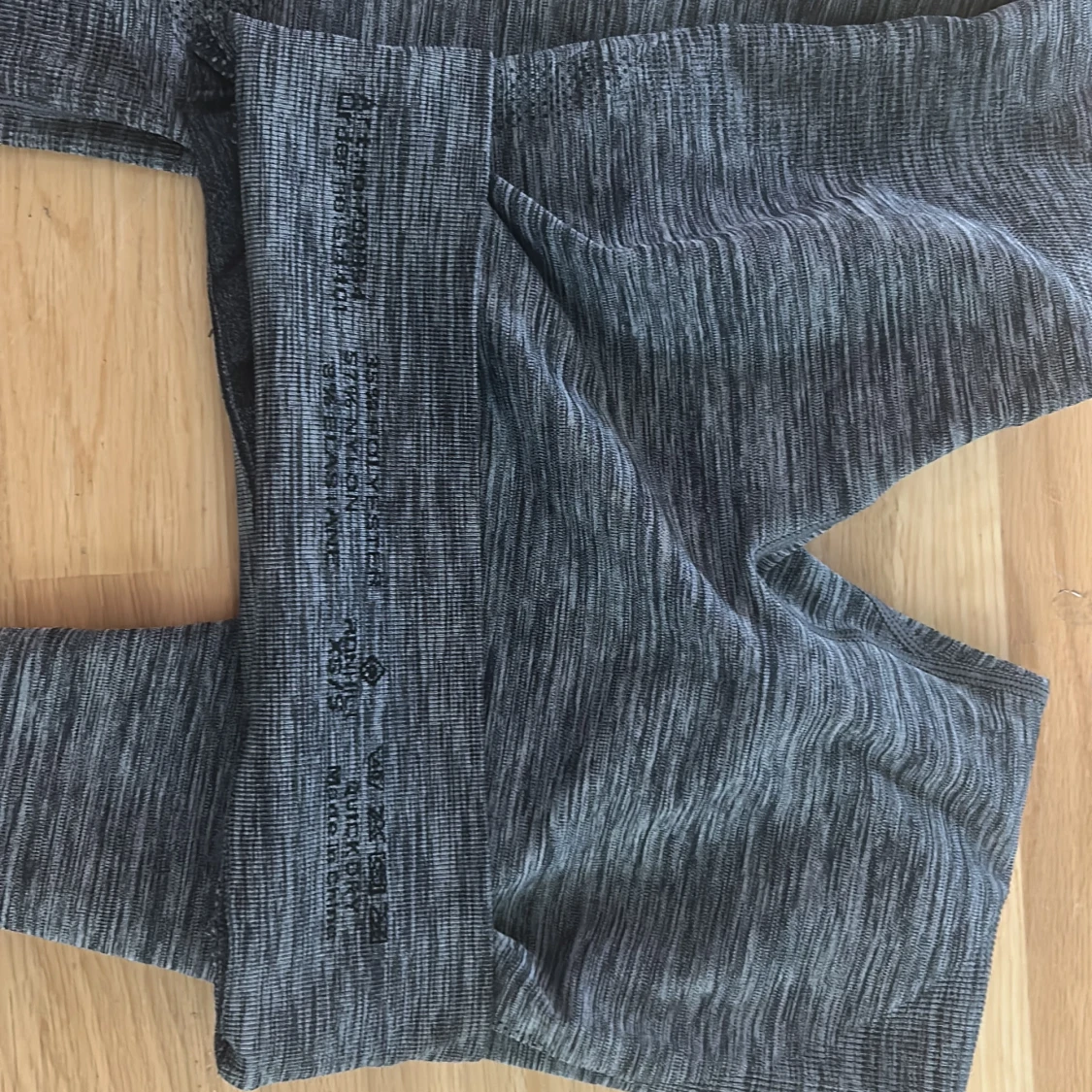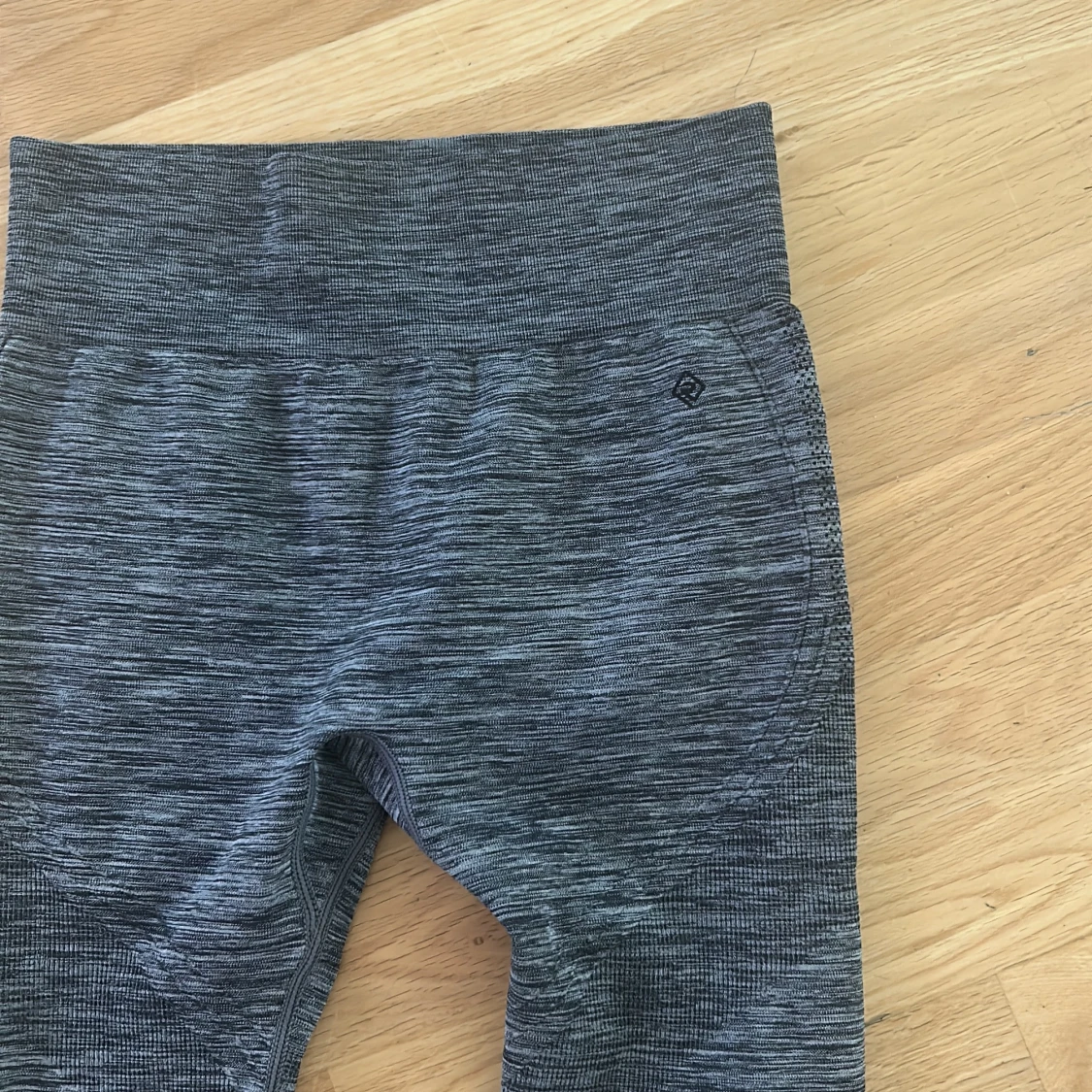 Snygga gråmelerade leggings från Röhnisch med hög midja och tight passform. Tillverkade i ett stretchigt syntetmaterial som andas, perfekta för träning eller chill. Diskret logga på höften och sömlös design för extra komfort.