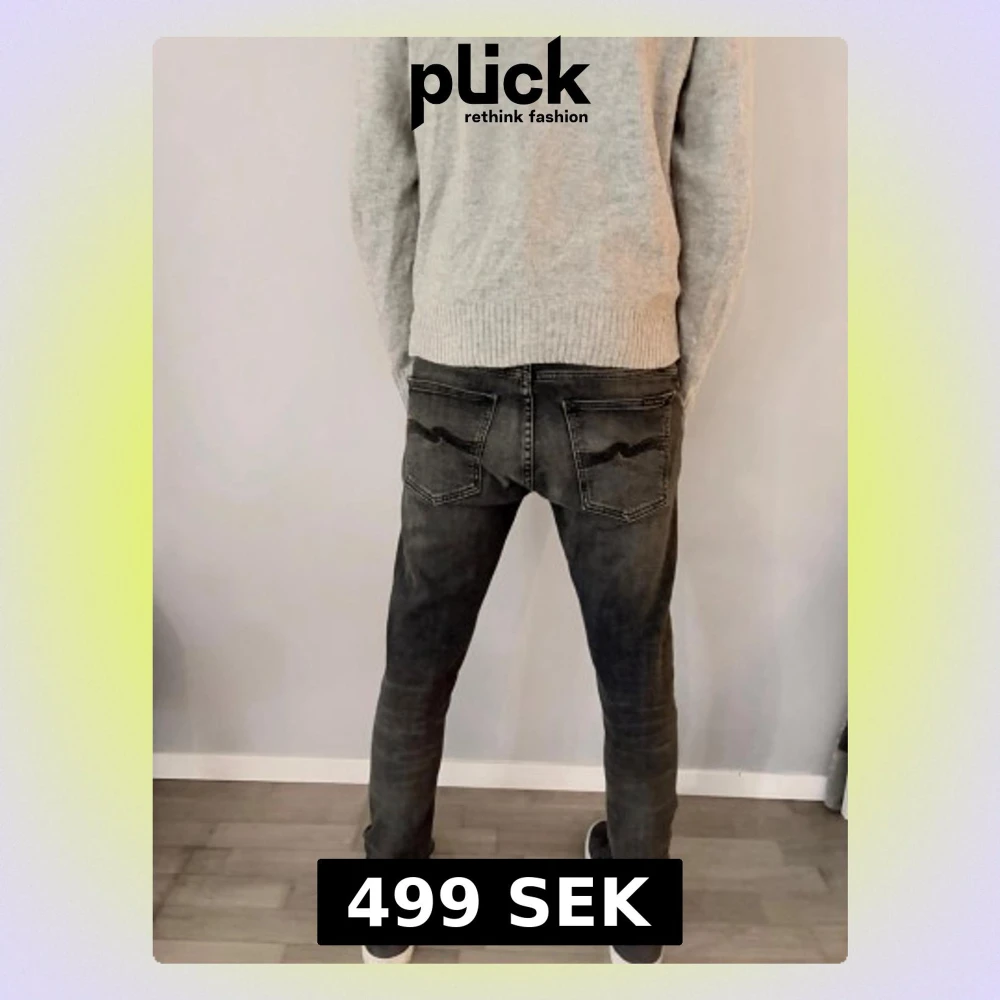 Det här är ett par slim fit-jeans från NUDIE med smala ben hela vägen från lår till fot. Passformen är tajt men ser ändå naturlig ut och följer benen utan att se överdrivet tight ut. Midjan sitter normalt och bakfickorna är placerade ganska högt, vilket ger en snygg och ren siluett bakifrån. Färgen är en mörkgrå/svarttvättad denim med lätt slitning och mjuka tvättskiftningar, ett måste i varje garderob PRISET KAN DISKUTERAS