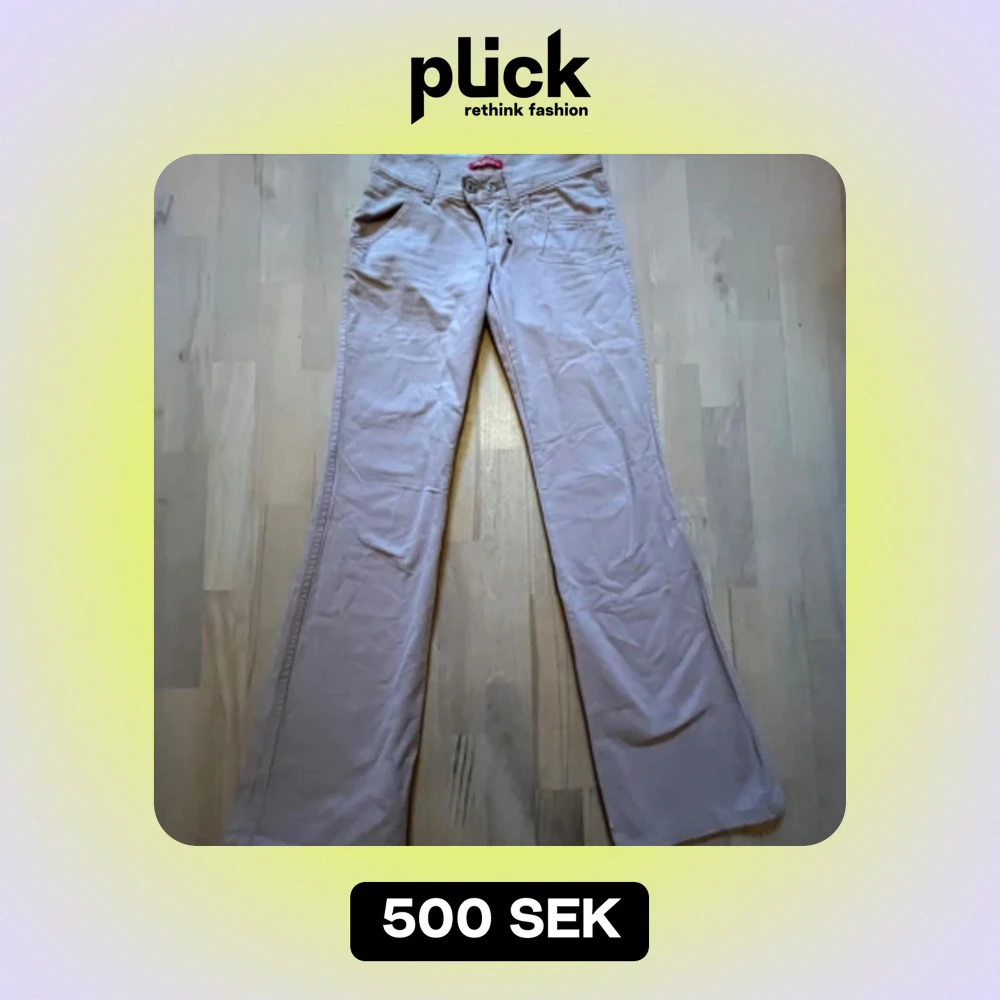 Ett par rosa bootcut jeans, köpt i spanien på en second hand. Inga fläckar elr ngt. De är ljusrosa/ljuslila. Jag är 1,65 och dom sitter bra i längden. Föreslå gärna pris!💞