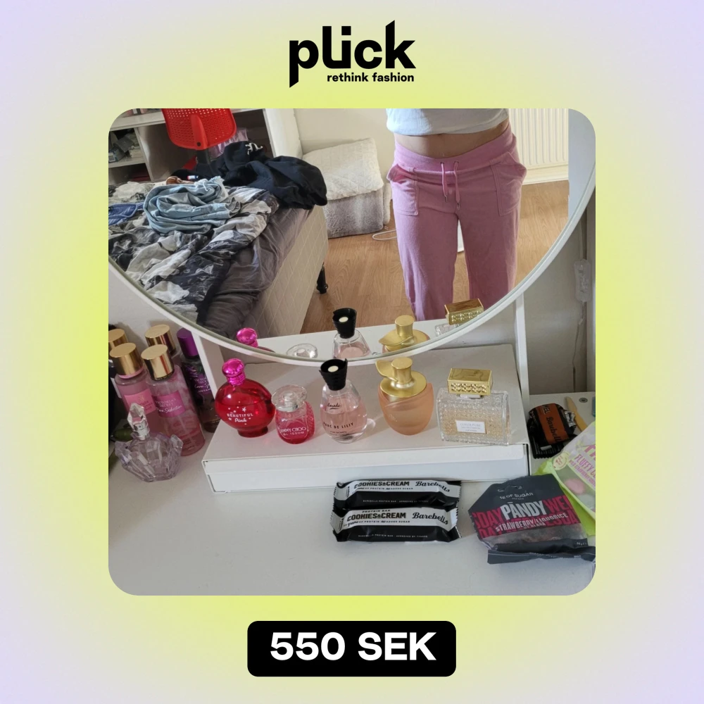 Säljer ett par Rosa juicy couture byxor. De har en loose passform och är perfekta för en chill dag hemma eller för att ha somnvardags byxor.. Byxorna har praktiska fickor med knappar bak och en elastisk midja för extra komfort. Perfekta för mysiga hemmakvällar eller en avslappnad dag ute.