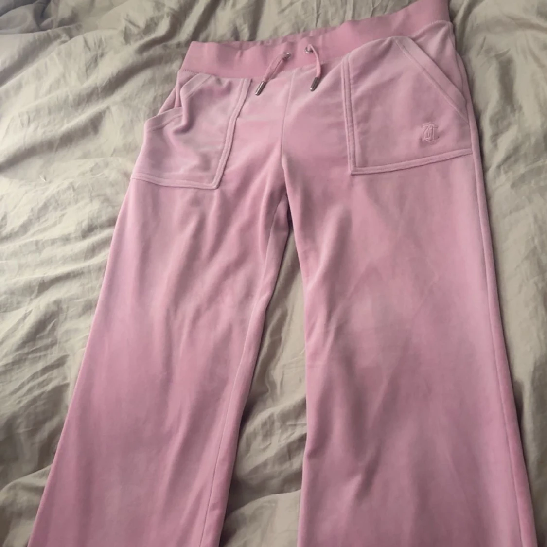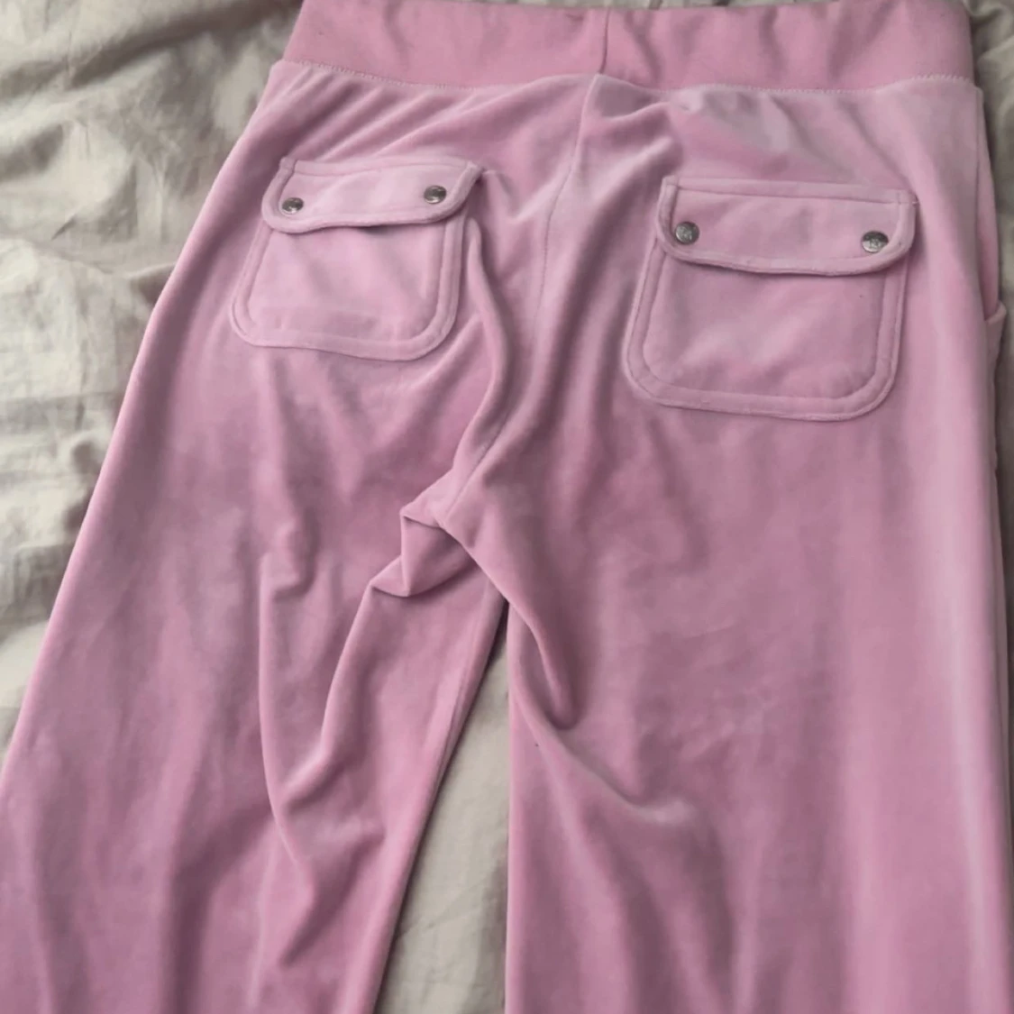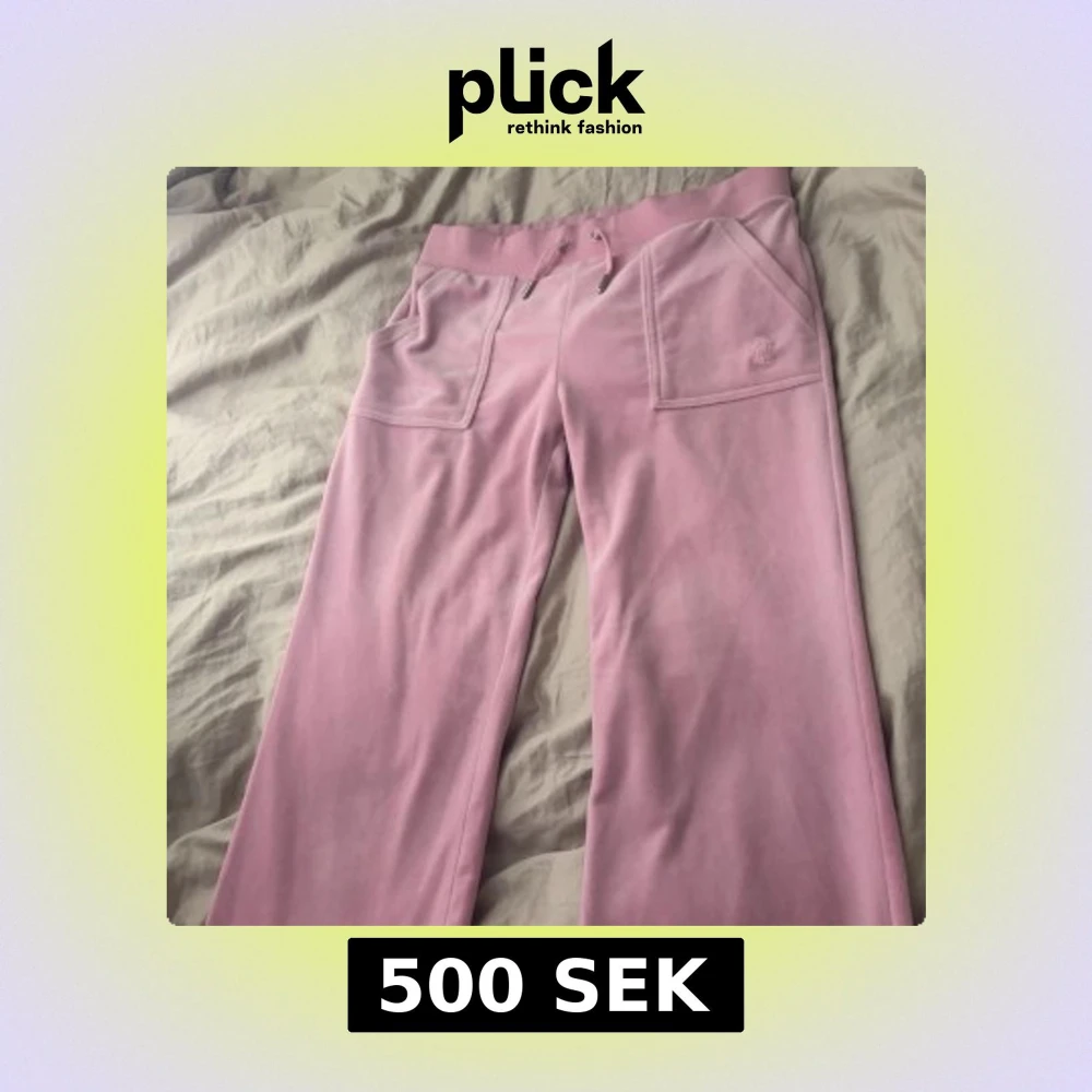 Säljer ett par helt oanvända juicy cotoure byxor i färgen begonia pink. Helt unikt skick. Snörning runt midjan ganska låga om man viker ner dem som jag gjort på bilden Ingen rost runt snörning eller knappar. Jag är 173cm och dem passar perfekt!
