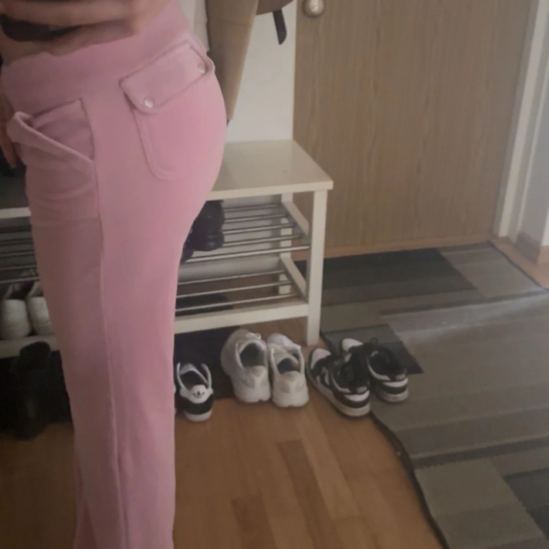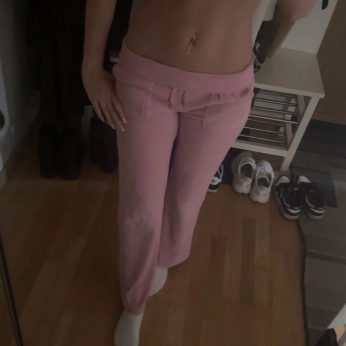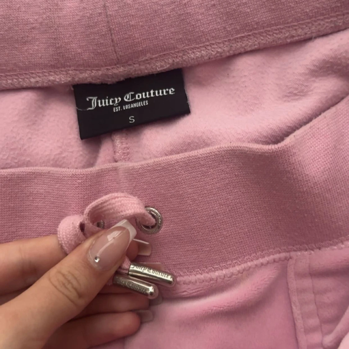 Säljer ett par helt oanvända juicy cotoure byxor i färgen begonia pink. Helt unikt skick. Snörning runt midjan ganska låga om man viker ner dem som jag gjort på bilden Ingen rost runt snörning eller knappar. Jag är 173cm och dem passar perfekt!