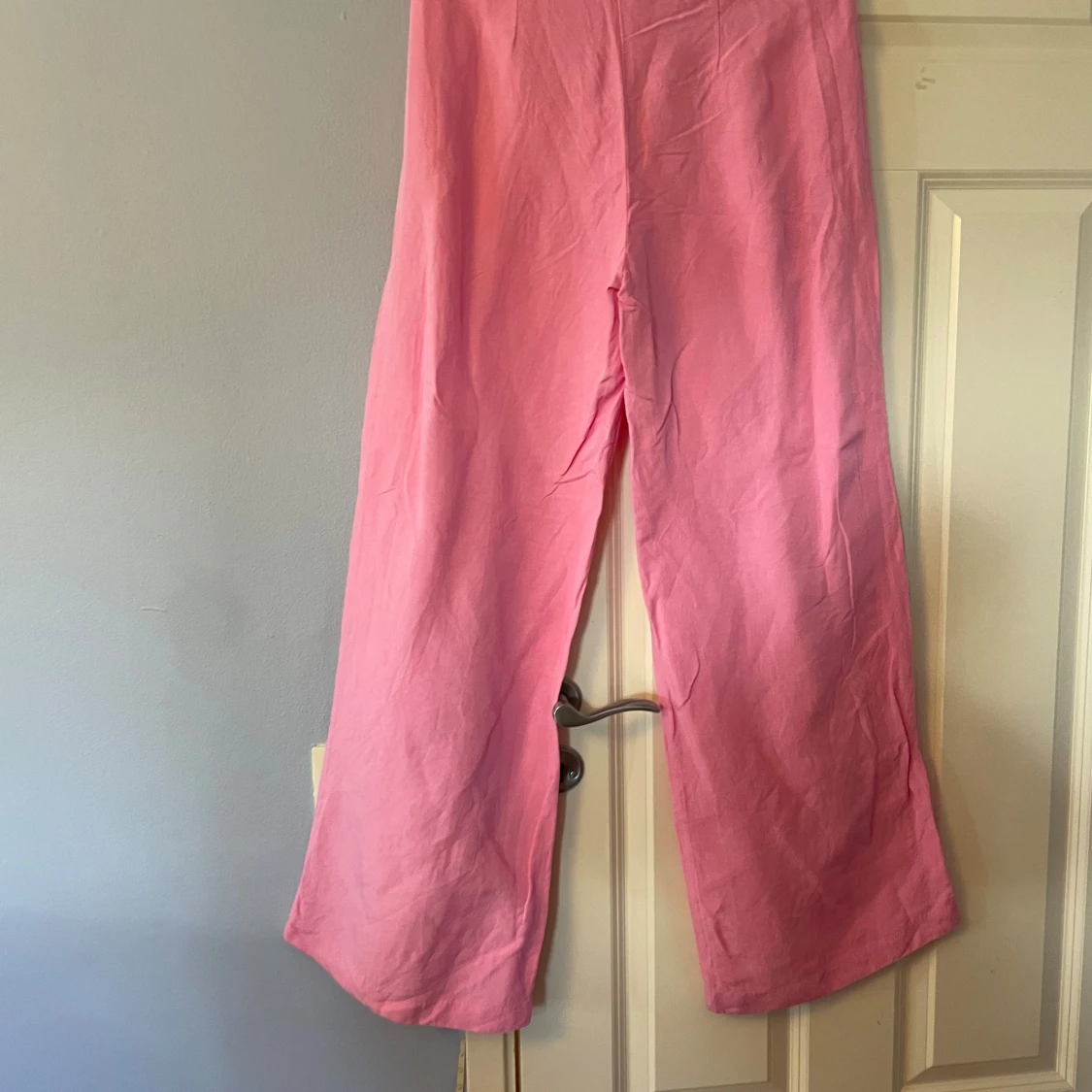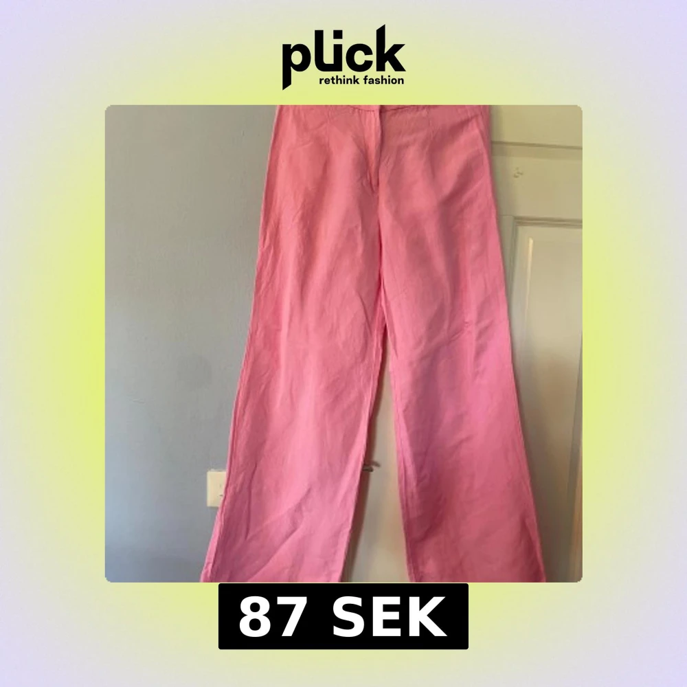 Säljer ett par ljusrosa linnebyx liknande byxor från H&M i storlek 38. Byxorna har en relaxed wide fit med raka ben och stängs med dragkedja och hake. Materialet är en skön linneblandning som känns luftigt och fräscht. Perfekt för dig som gillar färg och vill sticka ut. Bara använda 2-3 ggr.