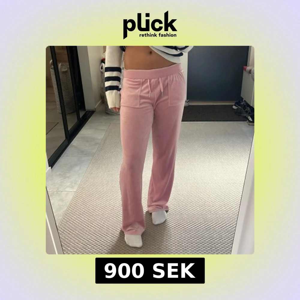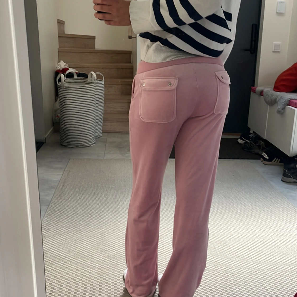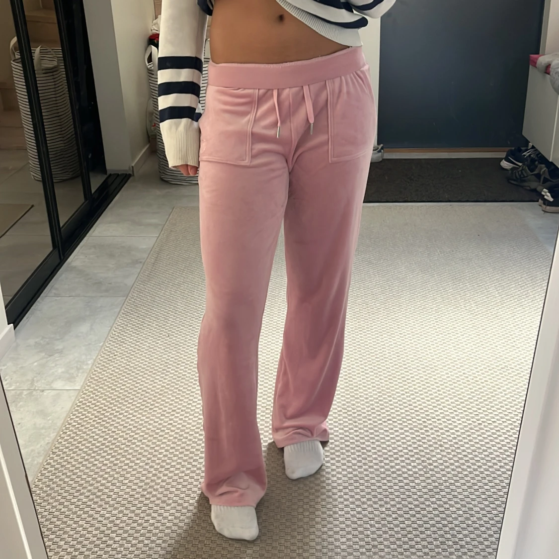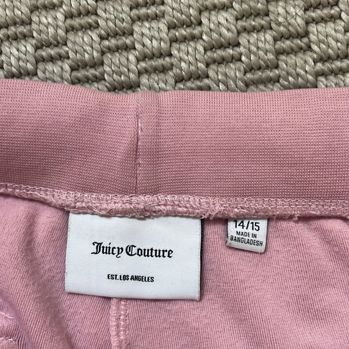 Säljer ett par rosa mjukisbyxor från märket juciy couture. Byxorna har en bekväm passform med resår i midjan och snörning. Den är lite större i storleken så skulle passa både storlek S och M. De är köpta på kids brand store.
