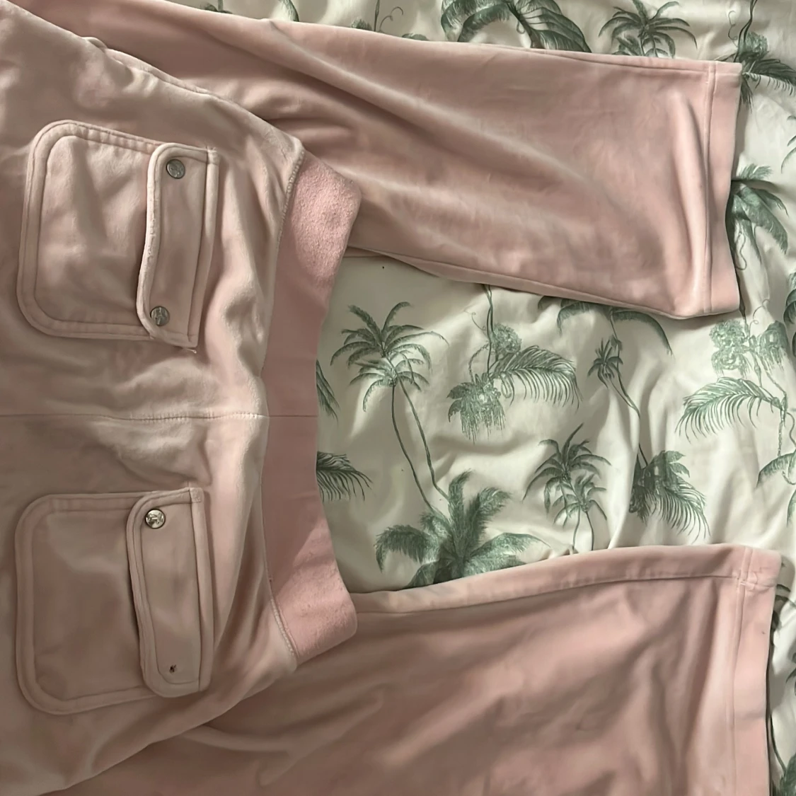 Säljer ett par rosa mjukisbyxor från Juicy Couture. Byxorna har små defekter , knappen är tappad på höger ficka och bandet har nagellim . Dom är lite smutsiga vid änden av byxan annars perfekt.
