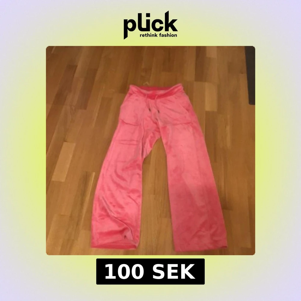 Säljer ett par rosa mjukisbyxor med breda ben och dragsko i midjan. Byxorna har fickor framtill och är gjorda i ett mjukt, syntetiskt material som känns skönt mot huden. Perfekta för en avslappnad stil.