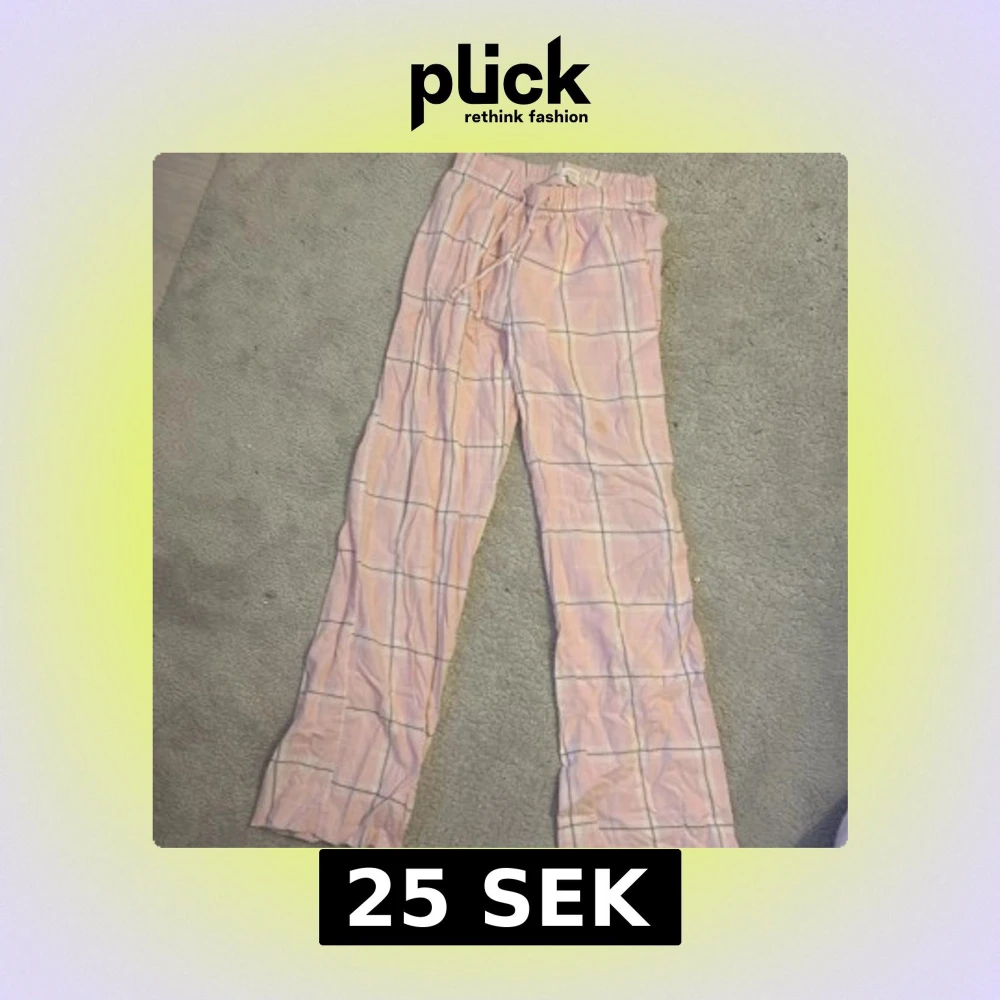 Säljer ett par bekväma rosa byxor från Gina Tricot med rutigt mönster. Byxorna har en elastisk midja med snörning för justerbar passform. Perfekta för en avslappnad stil. Omsydda längst ner så de blir längre