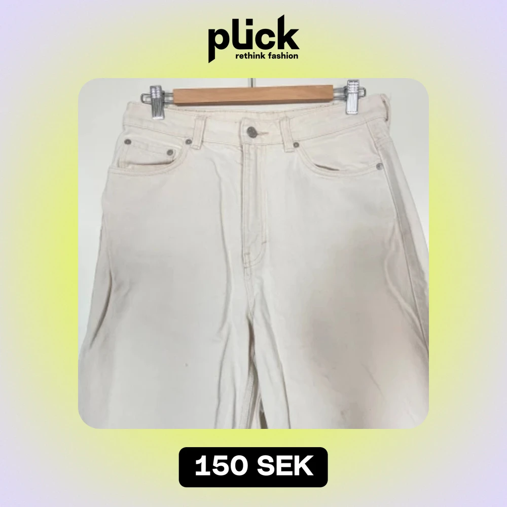 Rowe jeans från Weekday i off white. High waist straight leg modell. Storlek W30L32. Har några små fläckar på benen, se bilder☺️