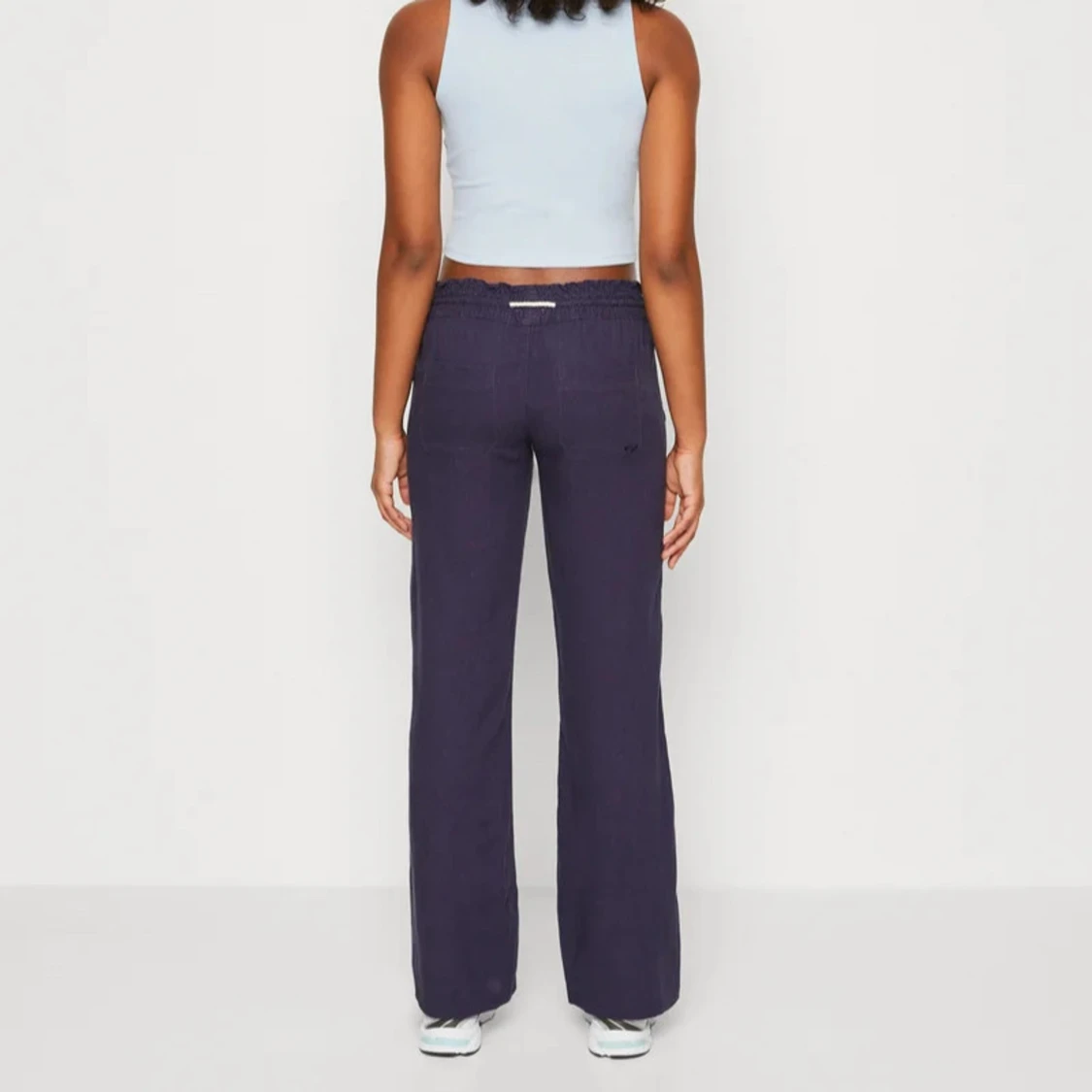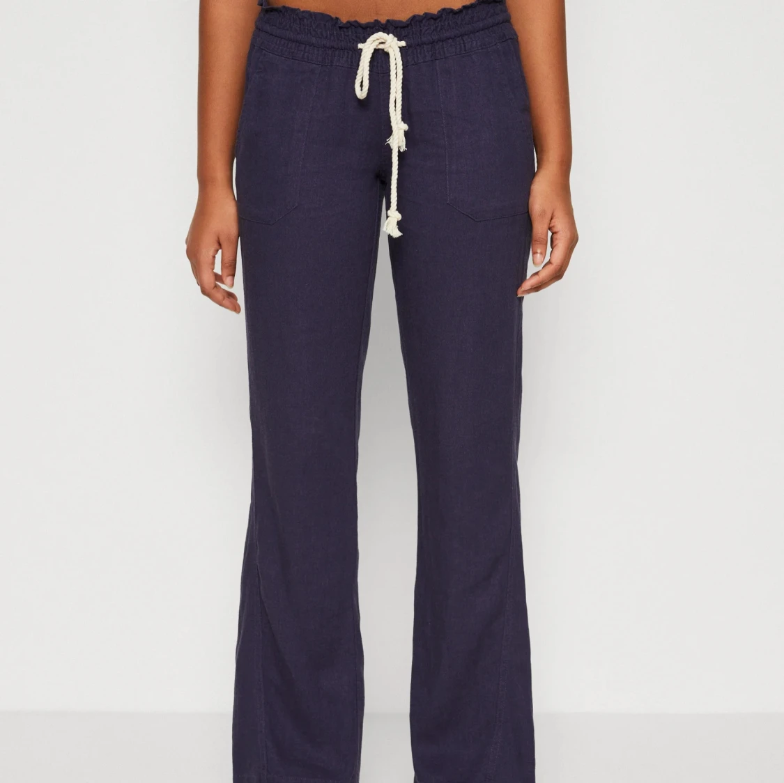 Mörkblå linnebyxor med avslappnad passform.