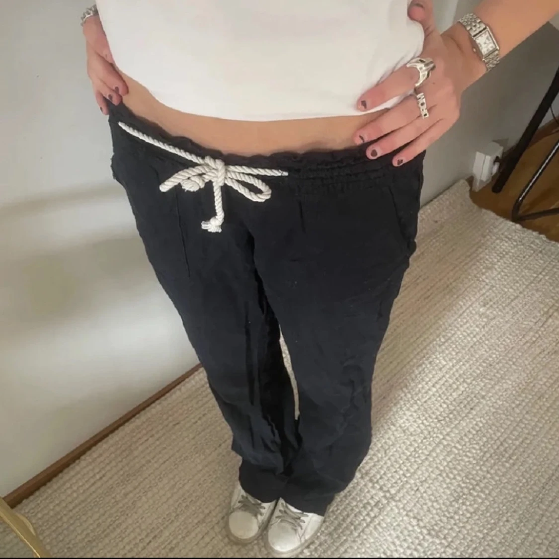 Superfina linnebyxor! Passar mig som är 162, men sömmen längst ner är uppsprättad så de passar nog någon runt 168 också🥰 Strl S❤️