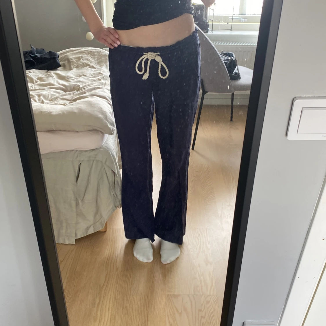 Ett par marinblåa Roxy linnebyxor som tyvärr är lite för korta på mig och därför behöver säljas! Jag är ungefär 1,73 så passar nog folk under 170. Originalpris: 600 kr