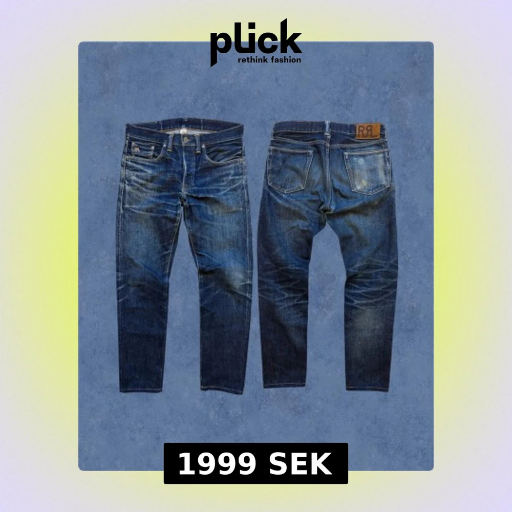 Ett par RRL selvedge jeans i slimfit som fått en grymt snygg fade! Det står 30/30 inuti men gå alltid efter måtten. Hör av dig vid frågor! Mått: Ytterbenslängd - 97 cm, Midja - 40.5 cm, Benöppning - 17 cm