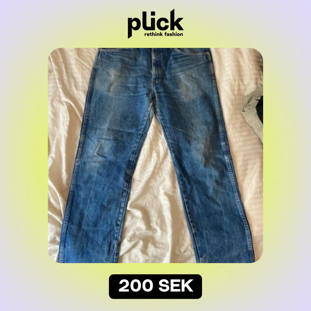 Thriftade Vintage rustler jeans i bra skick. Storleken står 34x32 men passar mer som 32x32 ungefär.