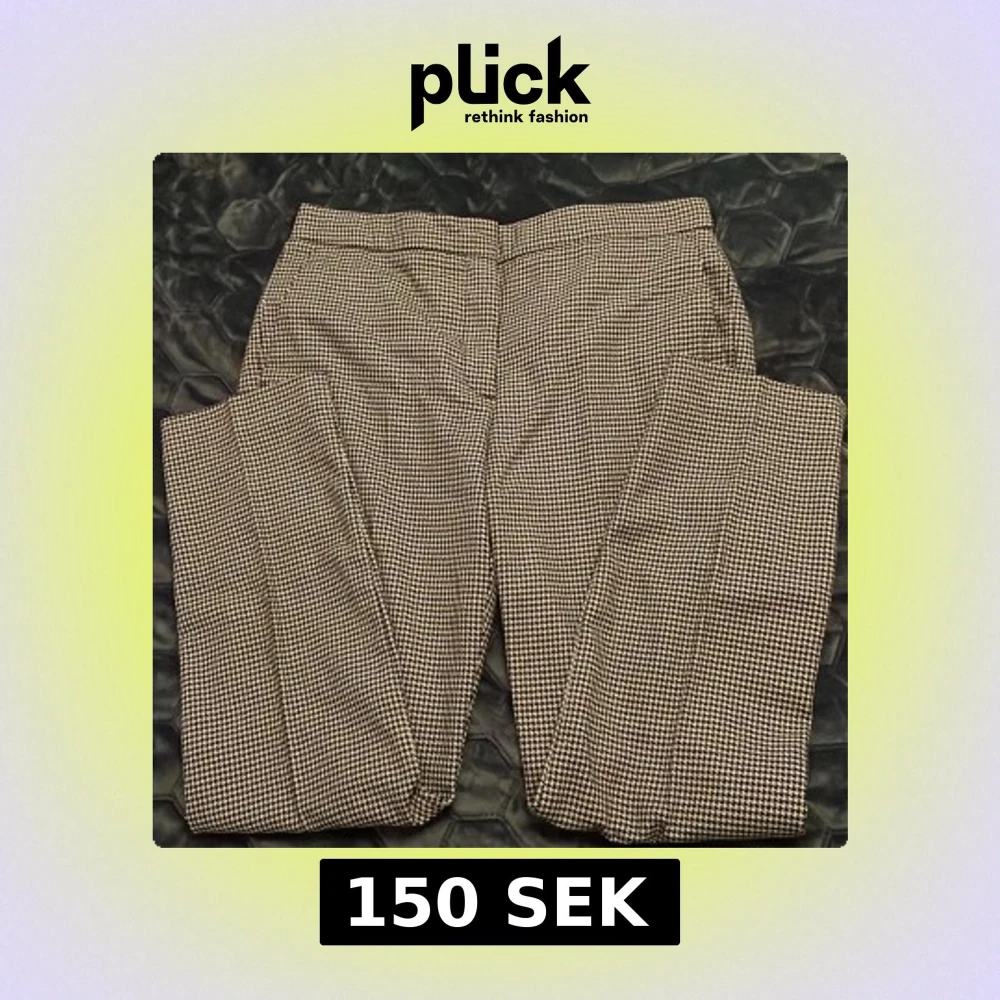 Snygga svartvita/hundtandsmönstrade rutiga byxor från Zara i storlek L. Byxorna har en klassisk design med raka ben och diskreta fickor baktill. Perfekta för en stilren look. De är mjuka och bekväma men passar både en dressad look och mer casual.