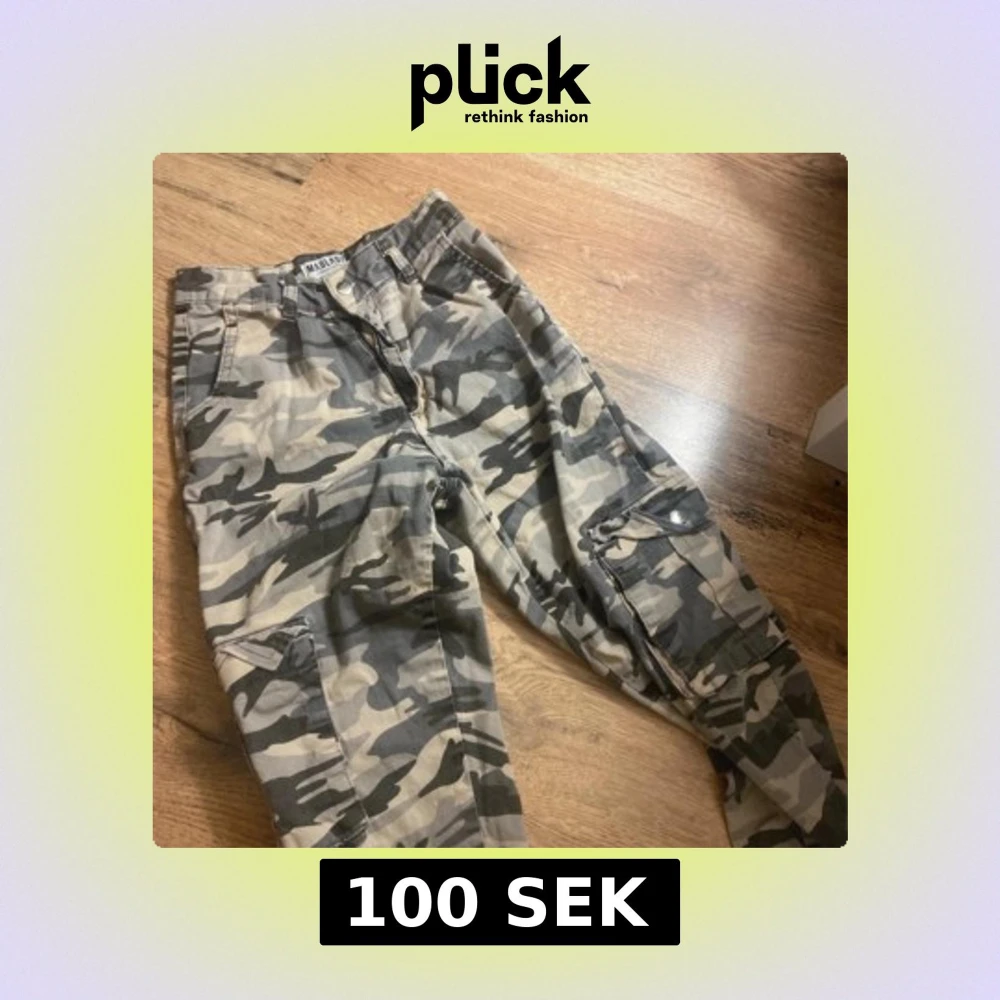 Säljer ett par cargobyxor från Madlady med grått och svart camomönster. Byxorna har flera fickor på benen och klassisk cargostil. Perfekta för dig som gillar streetwear och vill sticka ut lite extra. Materialet är bomull och de har normal passform.