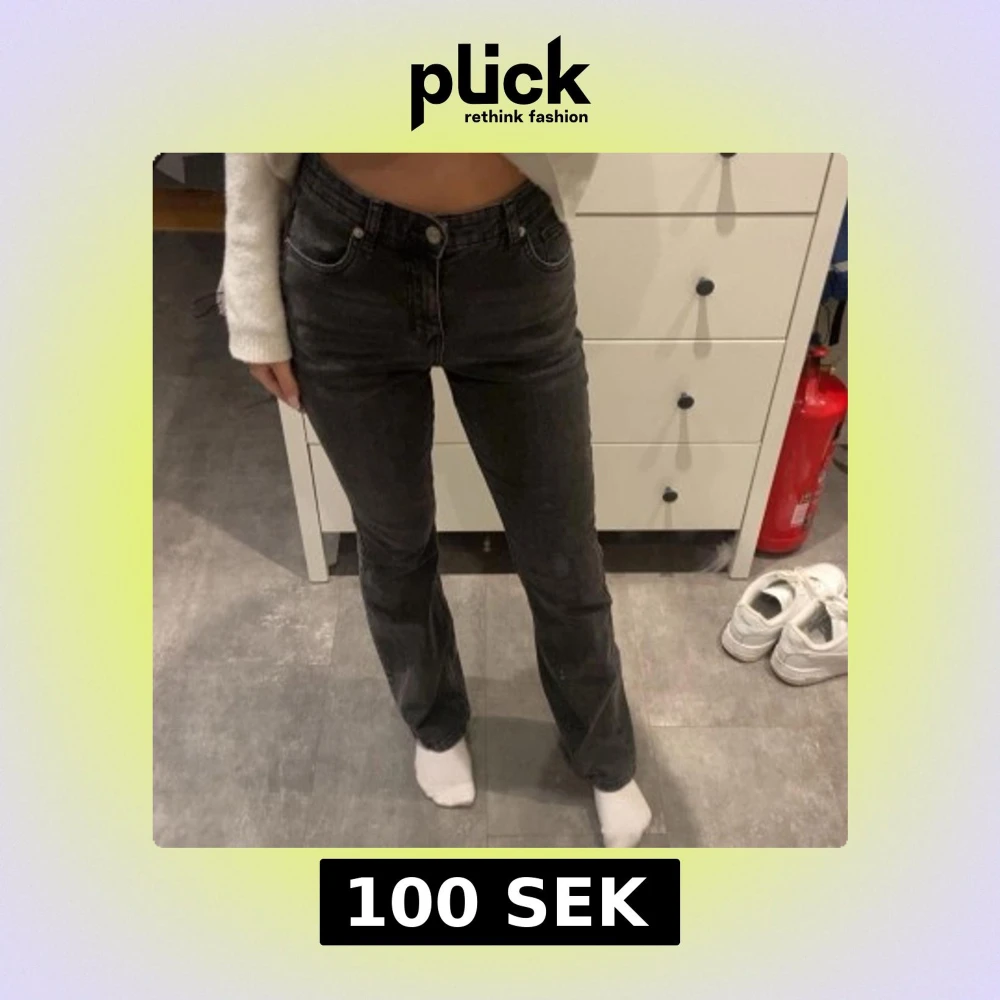 Säljer ett par svarta jeans med bootcut-modell och hög midja. I storlek S