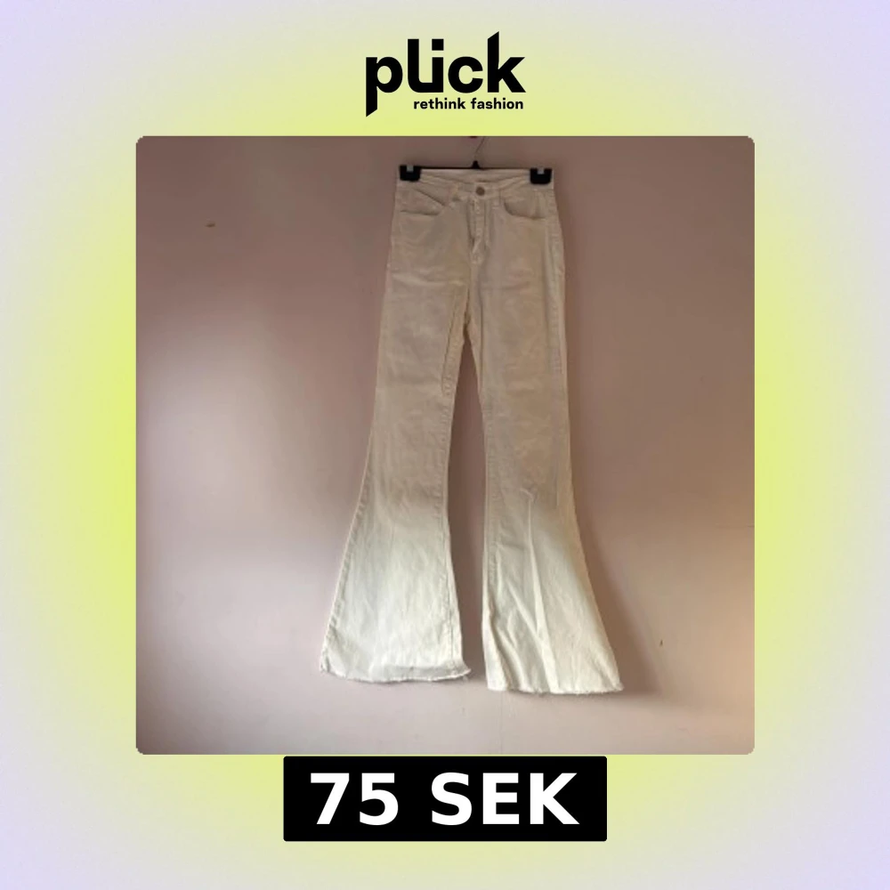 Snygga vita bootcut jeans med hög midja och klassisk femficksdesign. Perfekta för en stilren look. De har en knapp och dragkedja framtill.