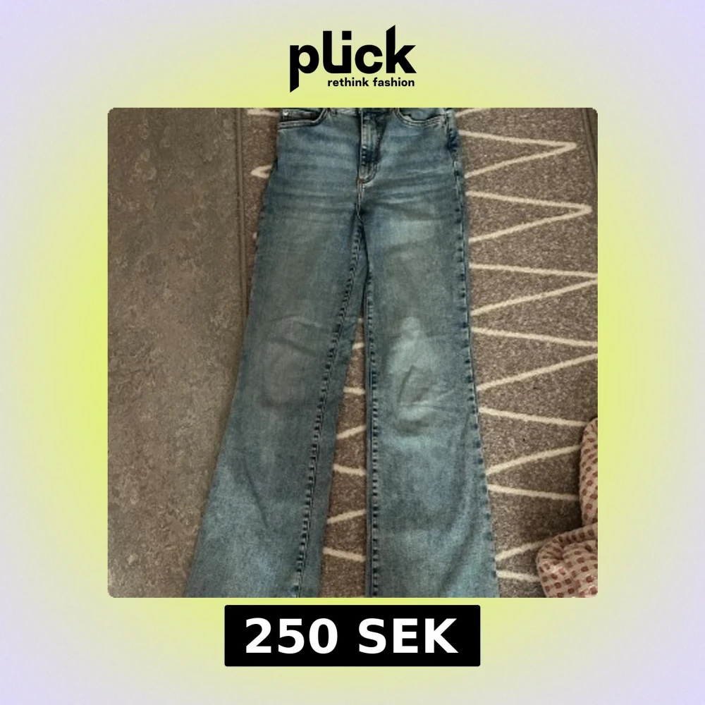 Ljusblå bootcut jeans från Curve i storlek S/32. Klassisk femficksmodell med snygga slitningar och kontrastsömmar. Jeansen har normal passform och är tillverkade i mjukt denimtyg som ger en avslappnad vibe.