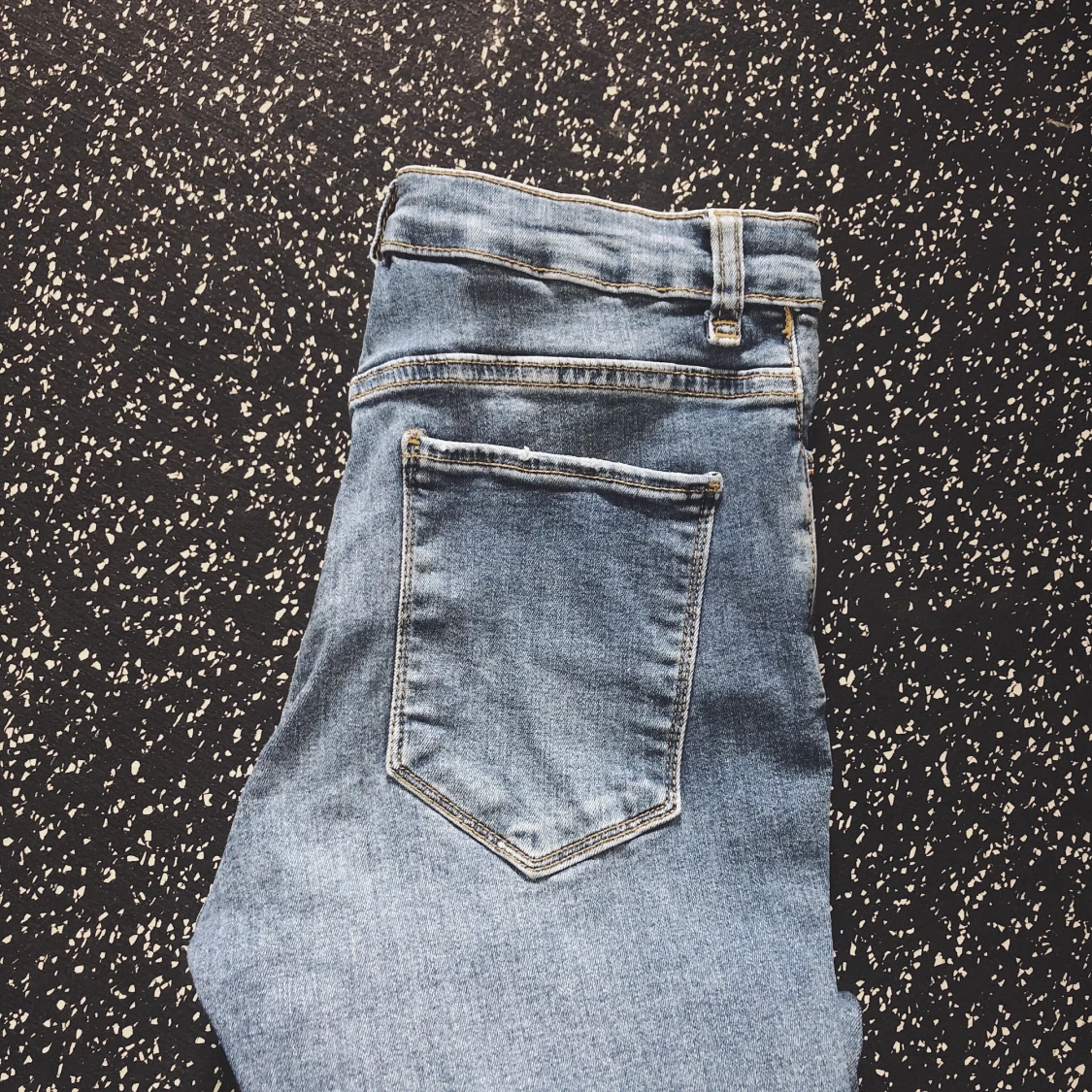 Snygga och sköna high-waist jeans i en mörkblå tvätt. Storlek S/38 (längd 71 cm/28 tum) men mindre i storleken så skulle säga att de passar även En större XS eller 36! * Kolla in mina andra annonser, säljer bl.a märken som: Levis, Champion, Victorias Secret, Tommy Hilfiger, Calvin Klein, Adidas, Nike, Puma, Aimn, Gymshark, Brandy Melville, Zara, Hollister, NAKD, Topshop, Fjällräven, Weekday, Monki, Triangl.