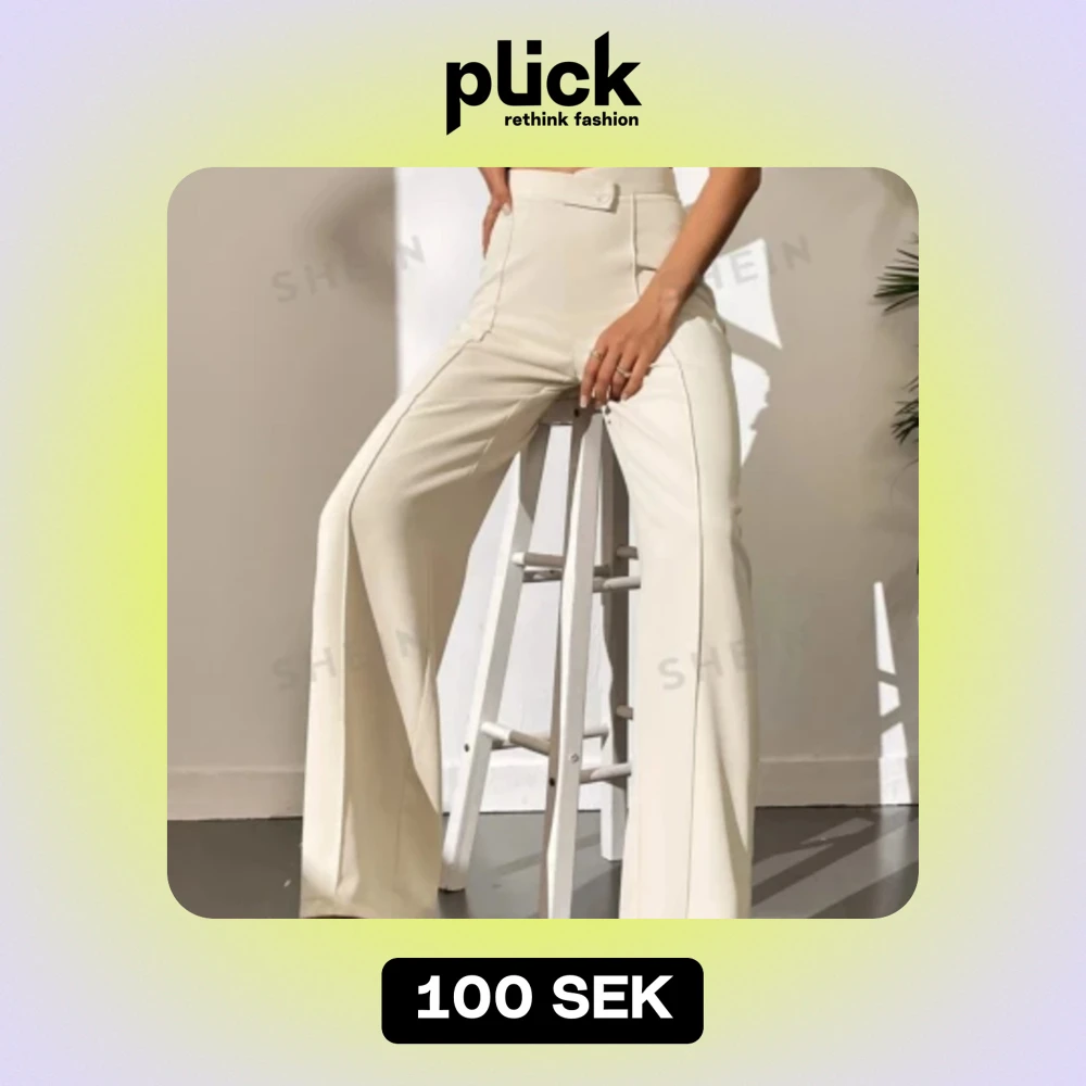 Säljer ett par snygga beige byxor från Shein. De är högmidjade och har en vid passform som ger en elegant look. Perfekta för både vardag och fest! Byxorna har en stilren design med knappar i midjan.