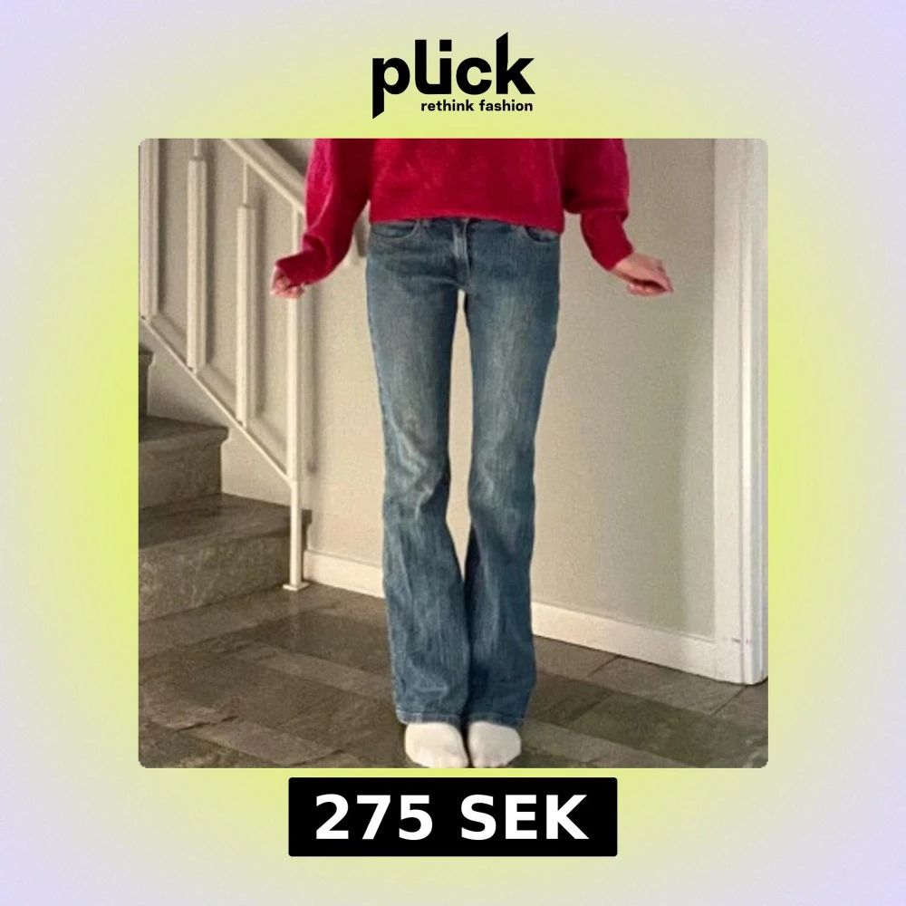 Snygga blå jeans med bootcut-stil. Tyget är lite linjerat vilket gör dem unika. Perfekta till våren. ☀️💘