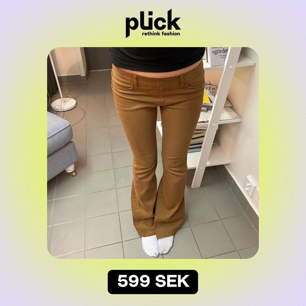 Lågmidjade jeans i storlek S! Jättesnygg brun/orange färg, perfekt höstfärg. Tjejen är 175 cm lång, hör av er för mått och frågor🤍