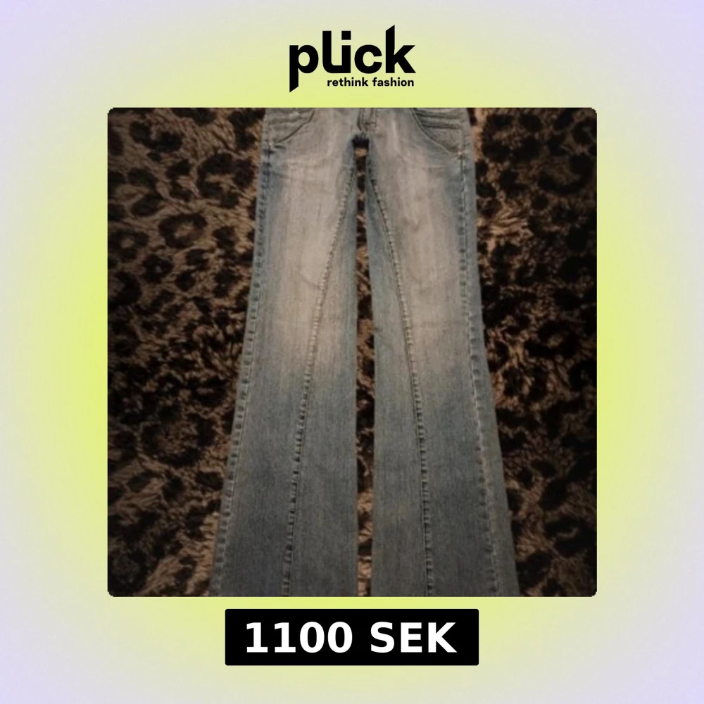 Säljer ett par ljusblå bootcut jeans med snygga detaljer på bakfickorna. passar xs-m skylle jag nog tro